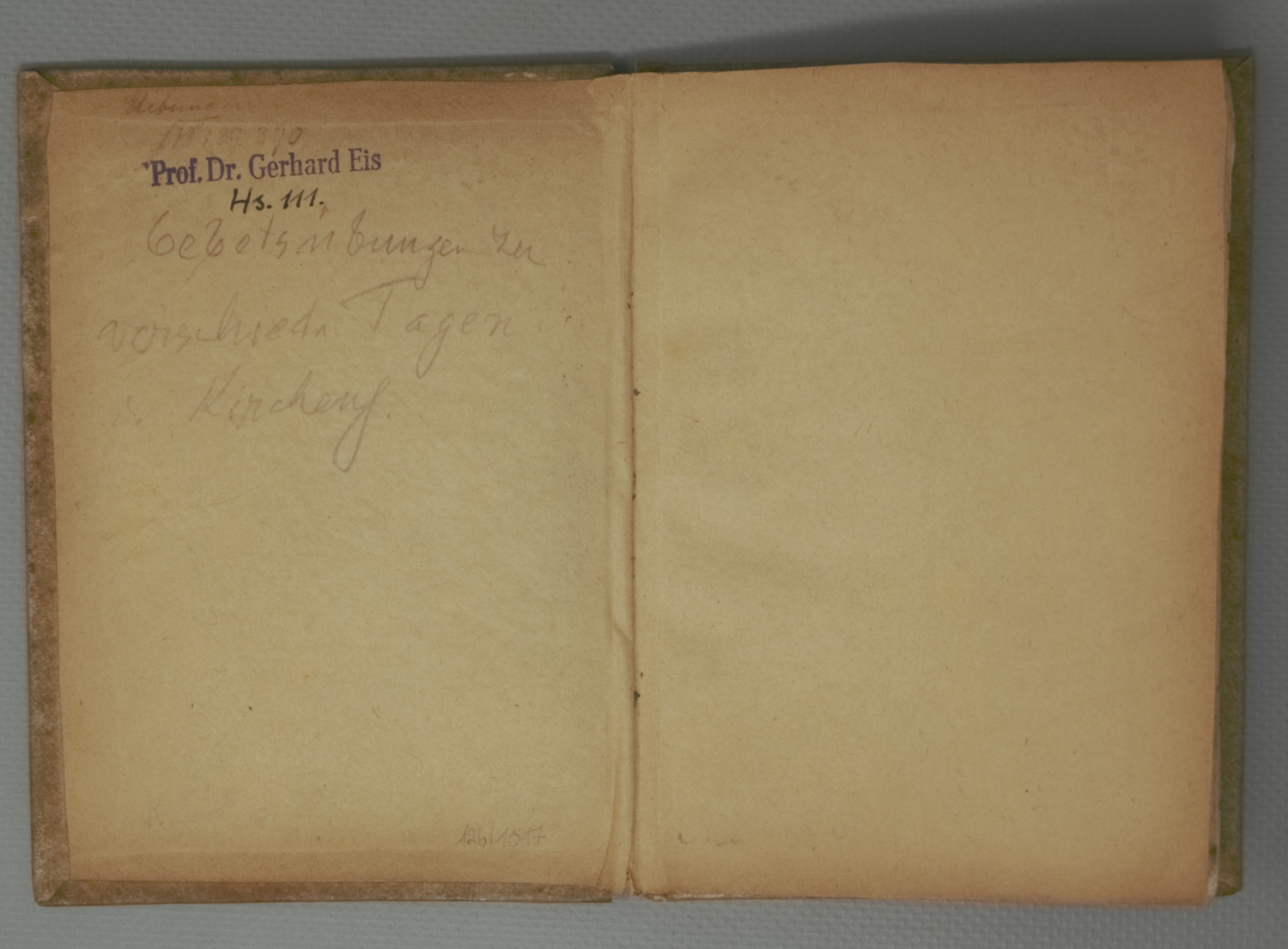 Die Handschrift stammt aus Buxheim, wurde dann in der Privatsammlung, Eduard Langer, Braunau (Böhmen), Ms. 476 bewahrt, davor Privatbesitz Antiquariat Ludwig Rosenthal, München, Nr. 1909/120,305 und davor Privatbesitz Antiquariat Ludwig Rosenthal, München, Nr. 1889/65,1169, zuletzt Privatsammlung, Gerhard Eis, Heidelberg, Hs. 111. Dieser erwähnt sie in Sonderandachten Buxheimer Kartäuser im 15. Jahrhundert, in: Zeitschrift für Religions- und Geistesgeschichte. Leiden und Marburg 1948. Band XIII (1961), 2, S. 169-175. Auch: Wolfram D. Sexauer, Frühneuhochdeutsche Schriften in Kartäuserbibliotheken. Untersuchungen zur Pflege der volkssprachlichen Literatur in Kartäuserklöstern des oberdeutschen Raums bis zum Einsetzen der Reformation (Europäische Hochschulschriften I,247), Frankfurt a.M. u.a. 1978, S. 25, 149.