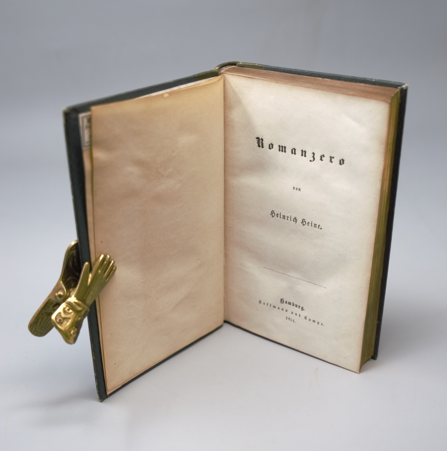 Heine, Heinrich. Romanzero. VI, 313 S. 17,5 x 10,5 cm. Halbleder d. Z. (schwach berieben) mit reicher RVergoldung, goldgeprägtem RTitel sowie Goldschnitt. Hamburg, Hoffmann und Campe, 1851.