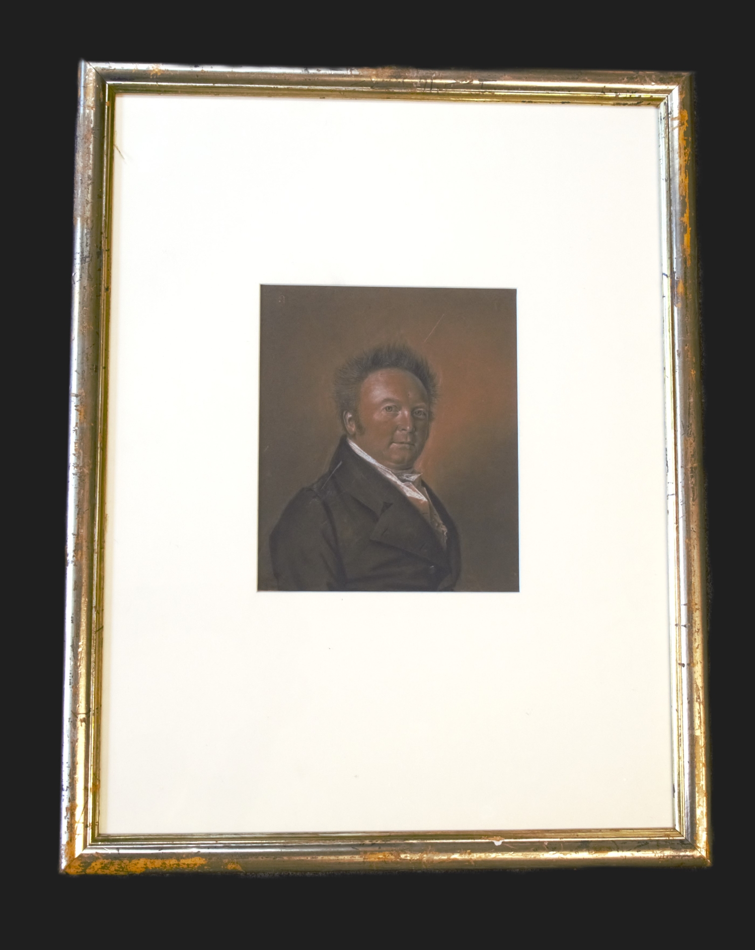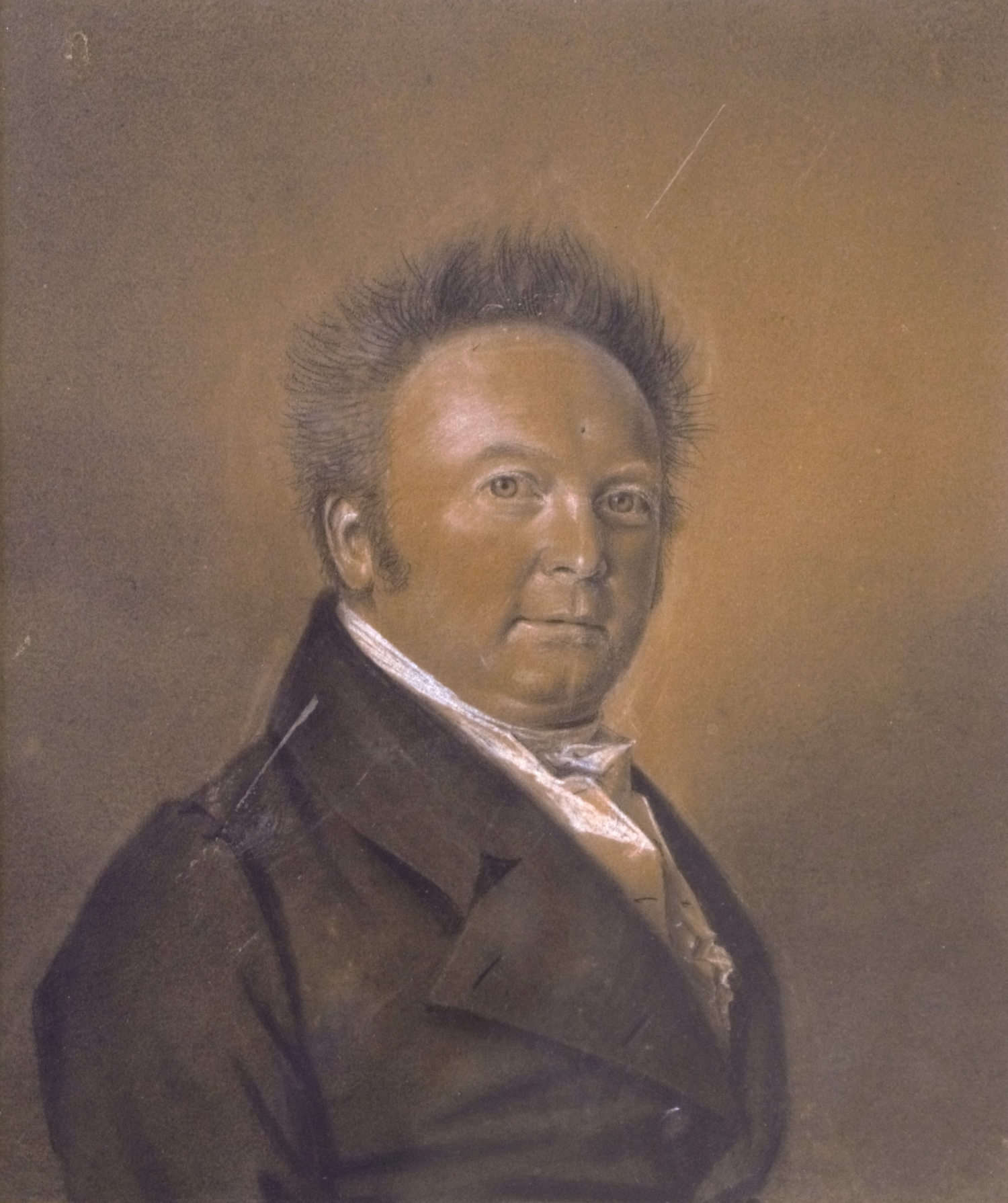 Billet mit Bildbezeichnung verso auf einem Porträt in schwarzen und weißen Pastellkreiden von dem Hofmaler Friedrich Wilhelms III. und Friedrich Wilhelms IV. von Preußen, das den "Obertribunalsrat" Johannes David Neumann darstellt. Verso die 11-zeilige vermutlich eigenhändige Beschriftung durch den Künstler: "Johannes David Neumann / dritter Sohn des Kirchen Raths / Neumann und der Ernestine / Wilhelmine Ludolphine geborene / Thalheim. Früher Ober Landes / Gerichts Rath in Westpreußen - / Seit 1820 Geheimer Ober Tri- / Bunals Rath, geboren den 14ten /September 1775, gezeichnet / von Franz Krüger im April / 1821. alt 45 Jahr." - Teils leicht fleckig, mit etwas Abrieb.