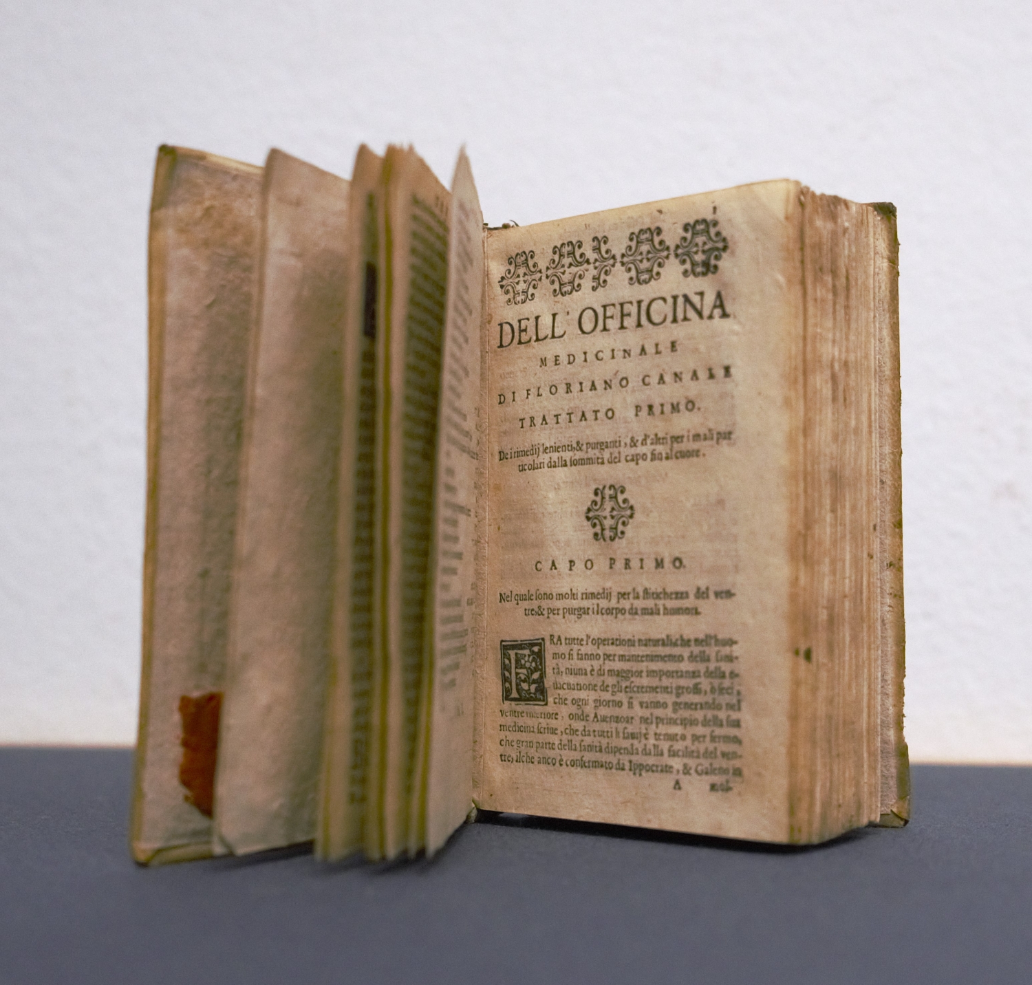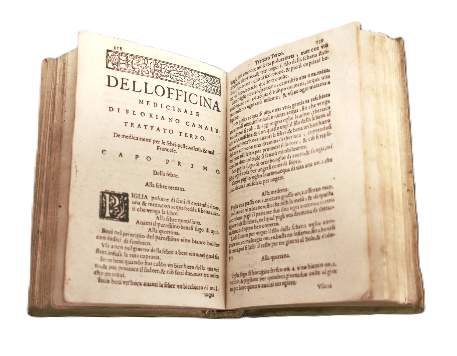 Krivatsy 2102. – Zweite Ausgabe der zuerst im selben Jahr bei Bartolomeo Fontana in Brescia erschienenen medizinischen Abhandlung des Komponisten und Organisten Floriano Canale (1551-1616), der offenbar - wie seine vorliegende einzige medizinische Schrift belegt - auch als Arzt in Erscheinung getreten ist. Neben musiktheoretischen Werken verfasste er auch Schriften zu den Themen Landwirtschaft, Jagd und Theologie. – Etwas feuchtrandig und fleckig, Vorsätze mit Annotationen sowie Siegelrest.