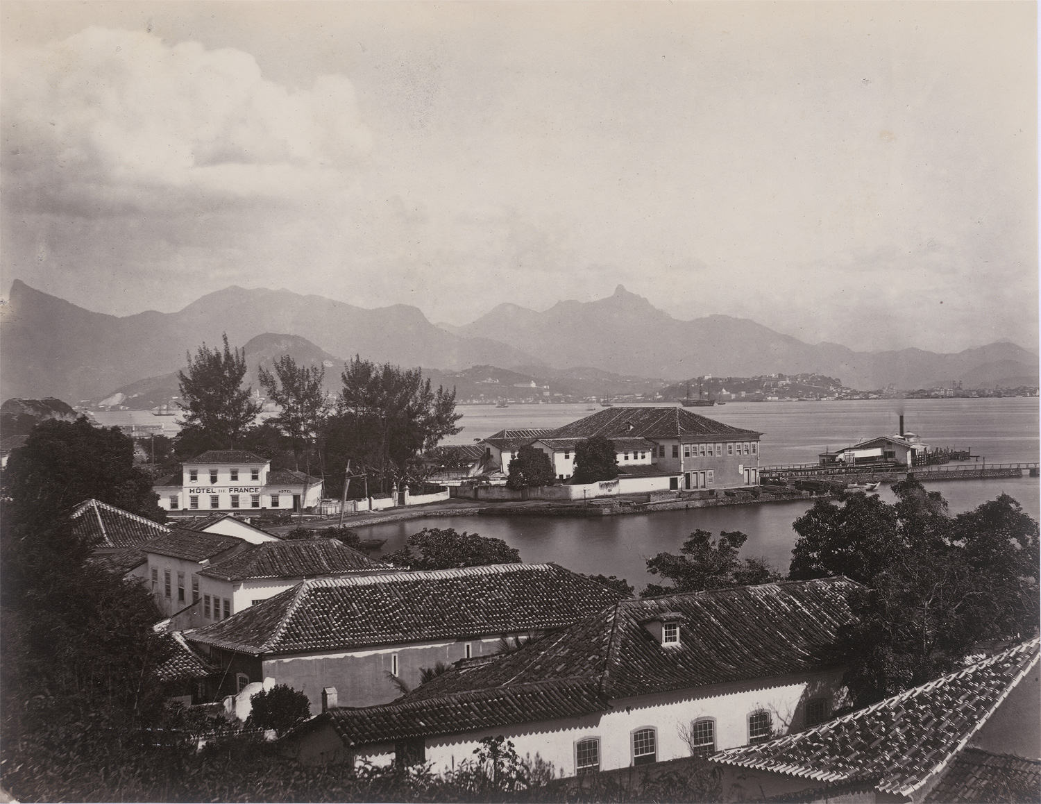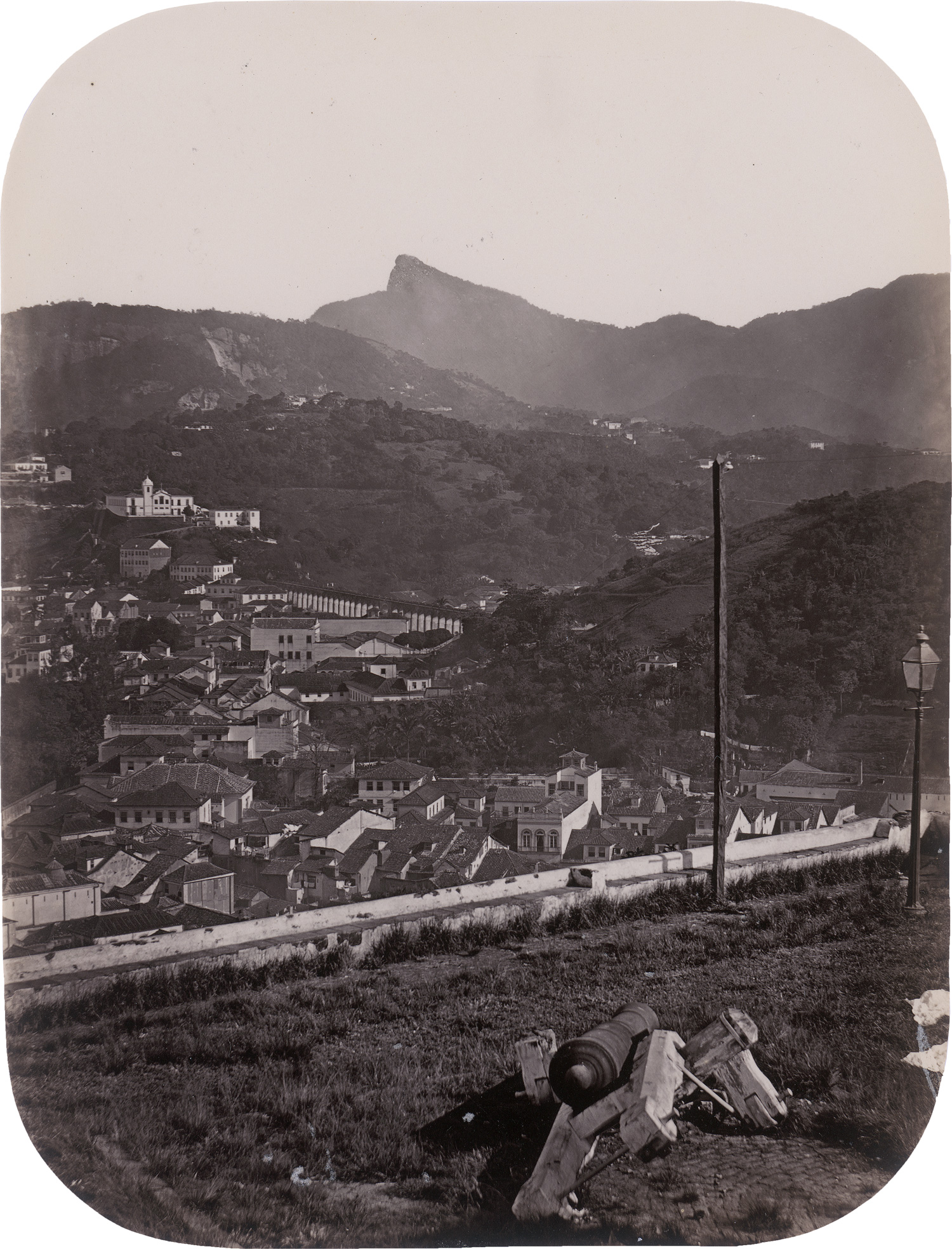This cohesive group of photographs offers a rare visual record of Rio de Janeiro in the mid-19th century, attributed to the French-born photographer Théophile Auguste Stahl. The views range from prominent landmarks, such as the Imperial Military Academy at Praia Vermelha, the Arsenal da Marinha, and Glória Hill, to sweeping panoramas of the city’s hills and coastline. Several images highlight the urban development of central neighborhoods like Santa Teresa, while others emphasize the dramatic natural setting of Guanabara Bay with Sugarloaf Mountain and Corcovado in the distance. Stahl’s precise compositions convey both the architectural ambition and evolving topography of imperial Rio during a period of dynamic transformation. – Some very light scuff marks, minimal foxing as well as a small tear on one print and light fading along the edges of some prints, otherwise all strong tonal prints in near excellent condition.
