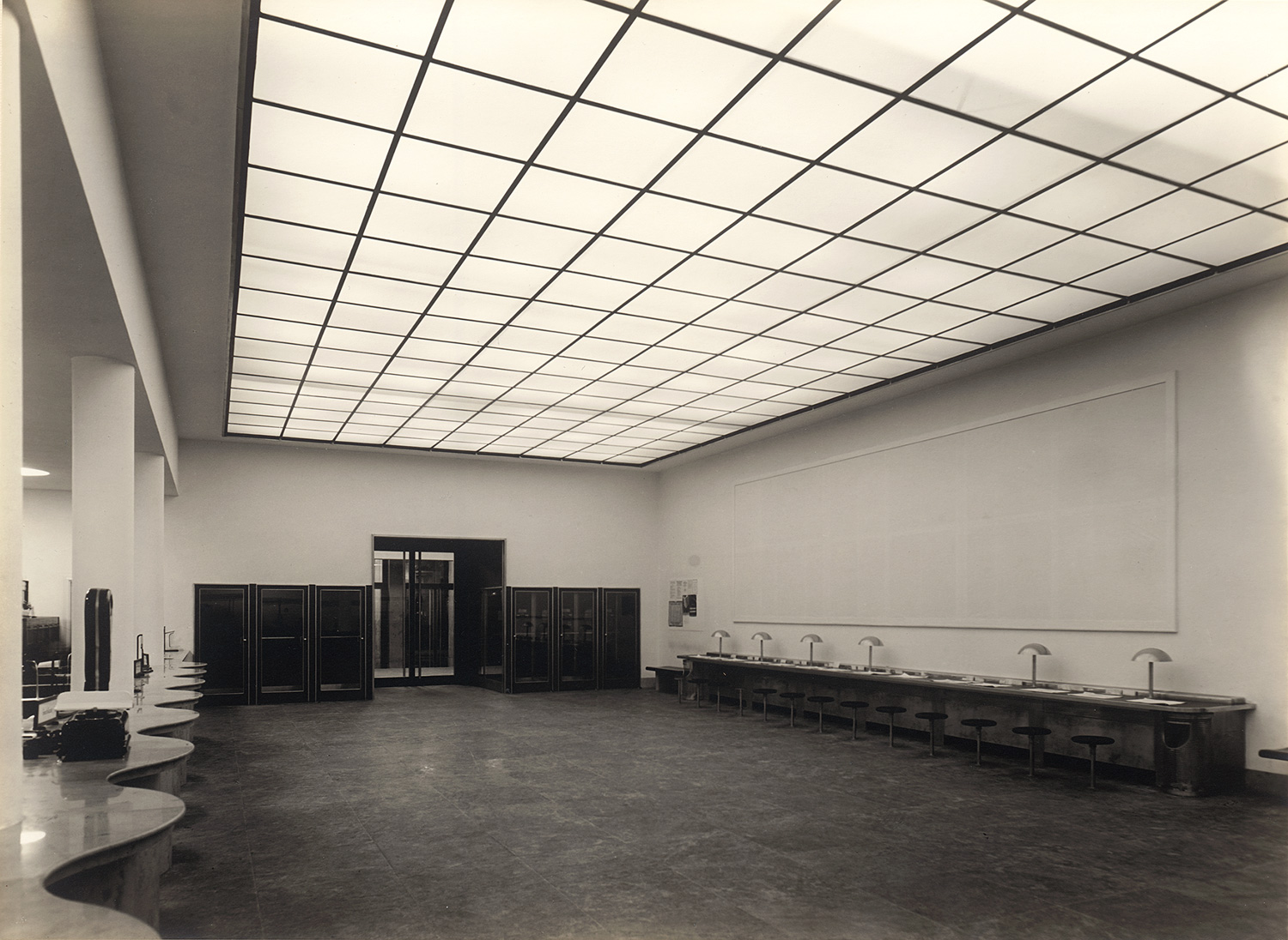 Photographer unknown. Public Architecture in the Third Reich. 1930s. 21 vintage gelatin silver prints. Each circa 16 x 21,5 cm or reverse. Each mounted to thick card with printed number on the verso, in original cloth presentation portfolio with "Zeiss Spiegellicht, Zeiss Ikon" stamped in black in upper left corner.