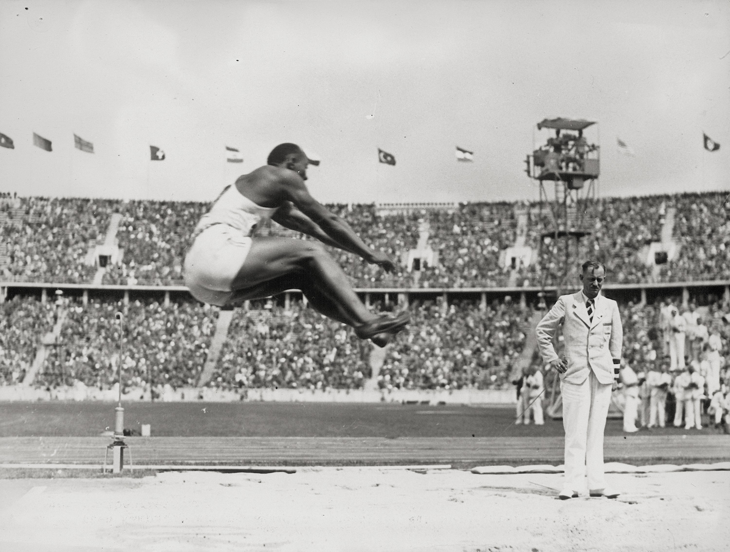 Comprehensive collection of press photographs from the 1936 Summer Olympics in Berlin, offering a vivid visual record of the Games as both a sporting and propaganda spectacle. The photographs depict a wide range of disciplines - including track and field, gymnastics, swimming, and equestrian events - as well as opening and closing ceremonies, athlete portraits, and moments of national representation. Participants such as Jesse Owens during his world record long jump, Tajima Naoto at the triple jump event, for which he set a world record and Gerhard Stöck surrounded by his students (signed and dated) are shown. Produced for contemporary media distribution, these prints document not only athletic achievement but also the carefully staged grandeur of the Nazi regime’s international showcase. – Some traces of use, some with pinholes/creases in upper corners, a few with discoloration spots.
