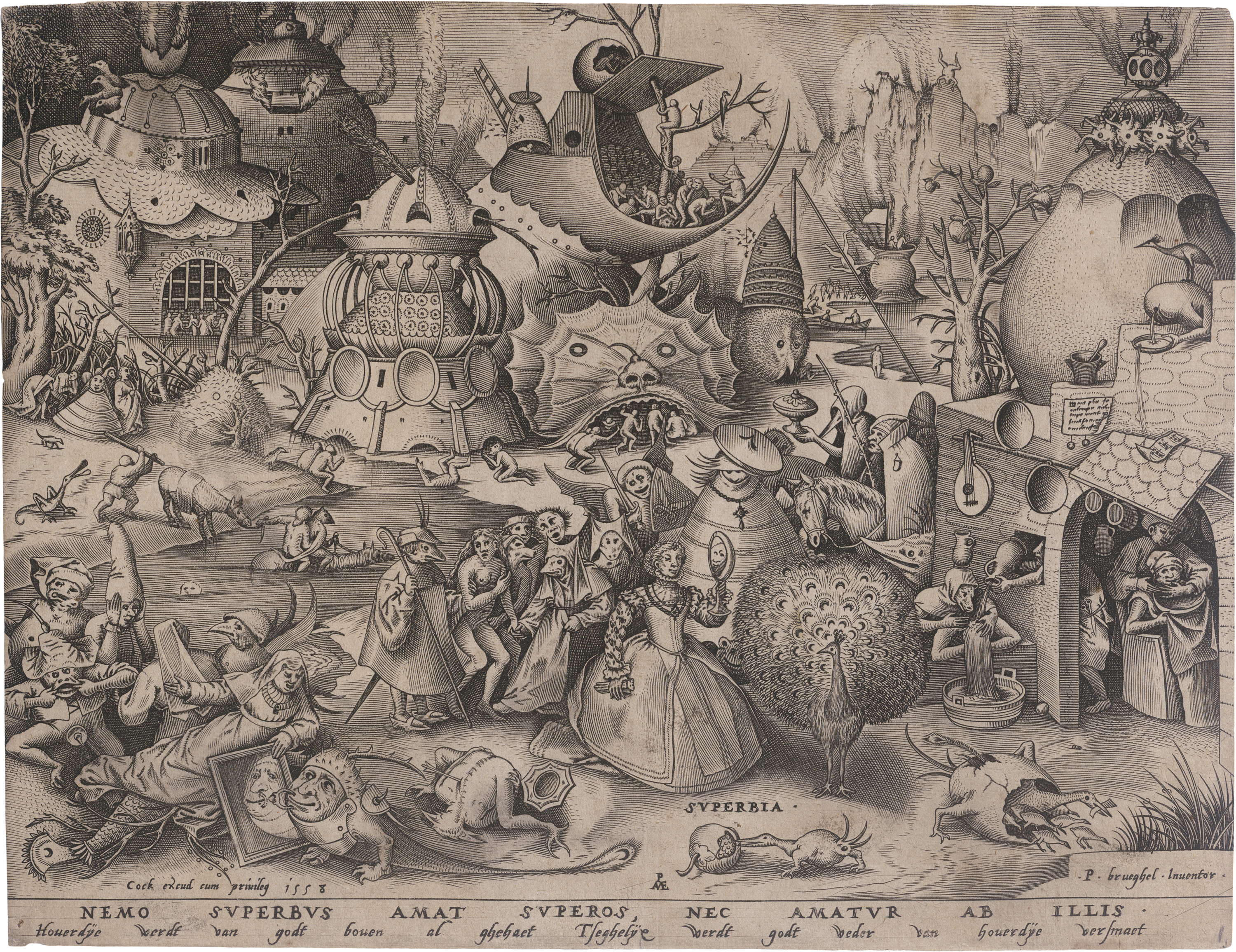 nach. Superbia. Kupferstich von Pieter van der Heyden. 22,2 x 29 cm. 1558. Hollstein (Bruegel) 127, Hollstein (Cock) 238, Bastelaer 127, Riggs 39, Orenstein (New Hollstein) 23, Bassens/Grieken 11 c. Wz. Fisch mit Blume.