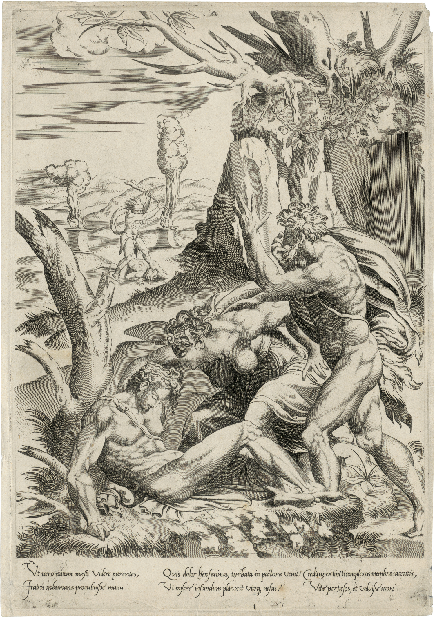 (Monogrammist GF, tätig in Bologna und Rom, ca. 1539-1574)Adam und Eva beweinen den Tod Abels