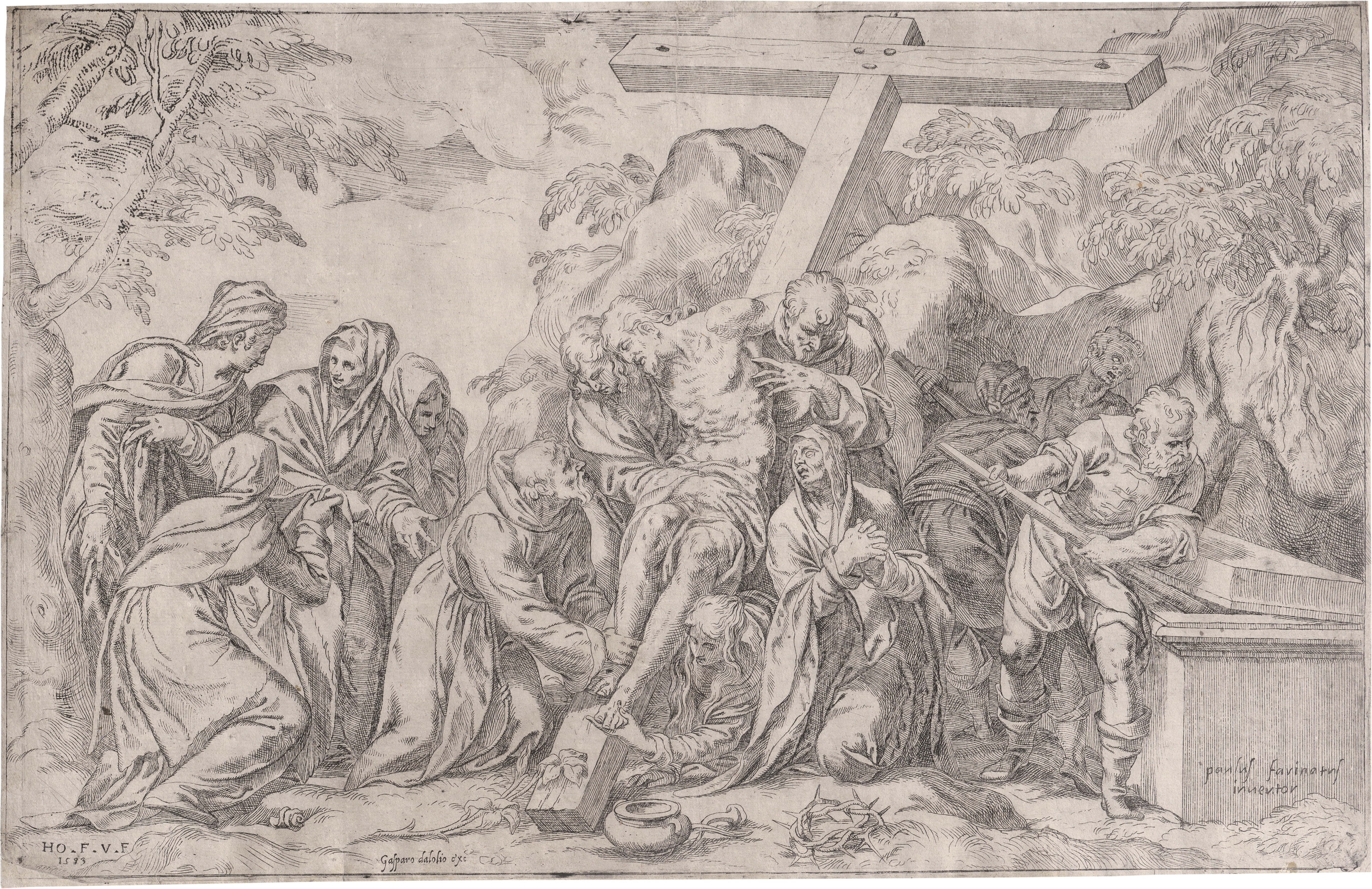 Die Kreuzabnahme. Radierung nach Paolo Farinati. 34,9 x 55,8 cm. 1583. B. XVI, S. 169, 2.