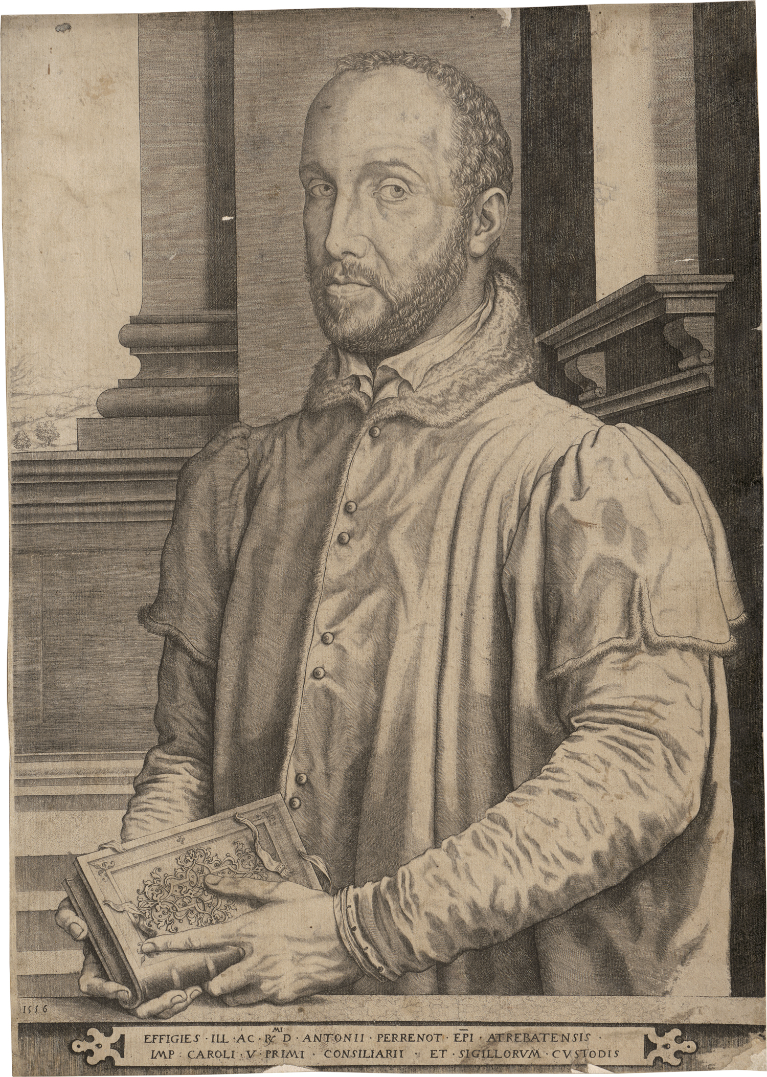 Bildnis Antoine Perrenot de Granvelle. Kupferstich. 40 x 28,4 cm. 1556. Wurzbach 45, Hollstein 80 III (von IV).