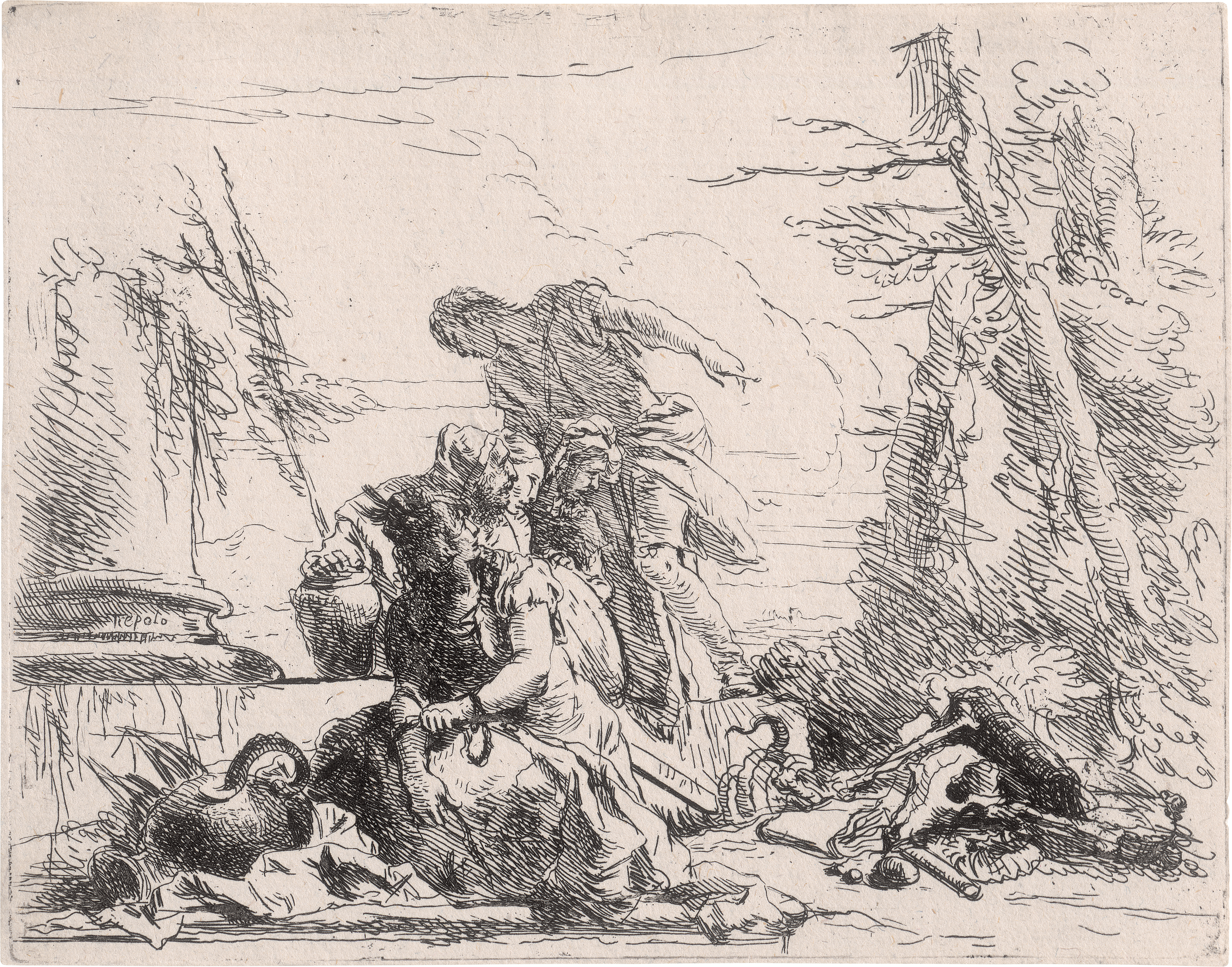 (1696 Venedig - 1770 Madrid)Donna con le braccia incatenate e quattro figure