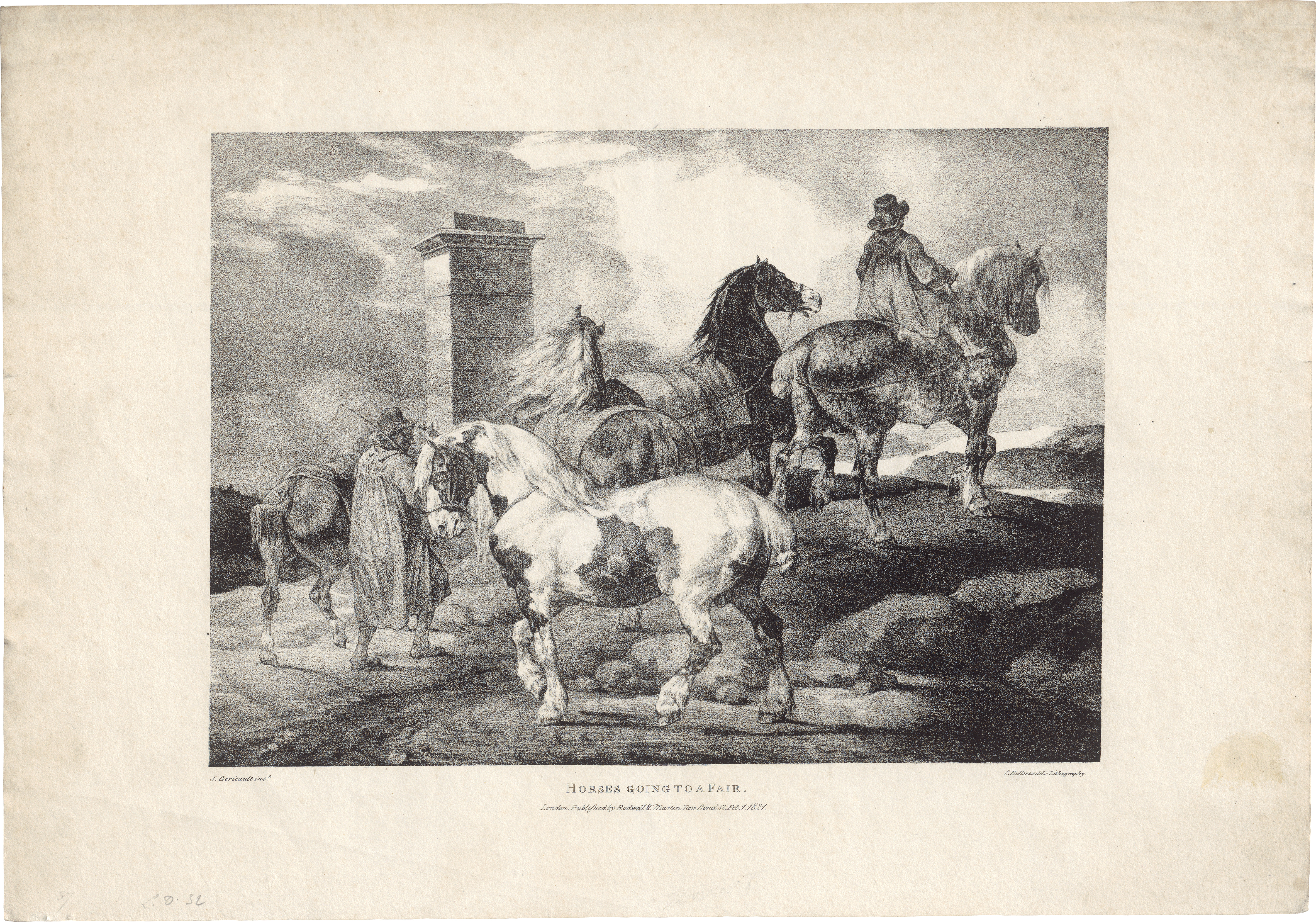 nach. Horses going to a fair. Lithographie auf Velin von Léon Cogniet. 27 x 35,4 cm. 1821. Delteil 32 II. Wz. Schriftzug "Whatman 1821".