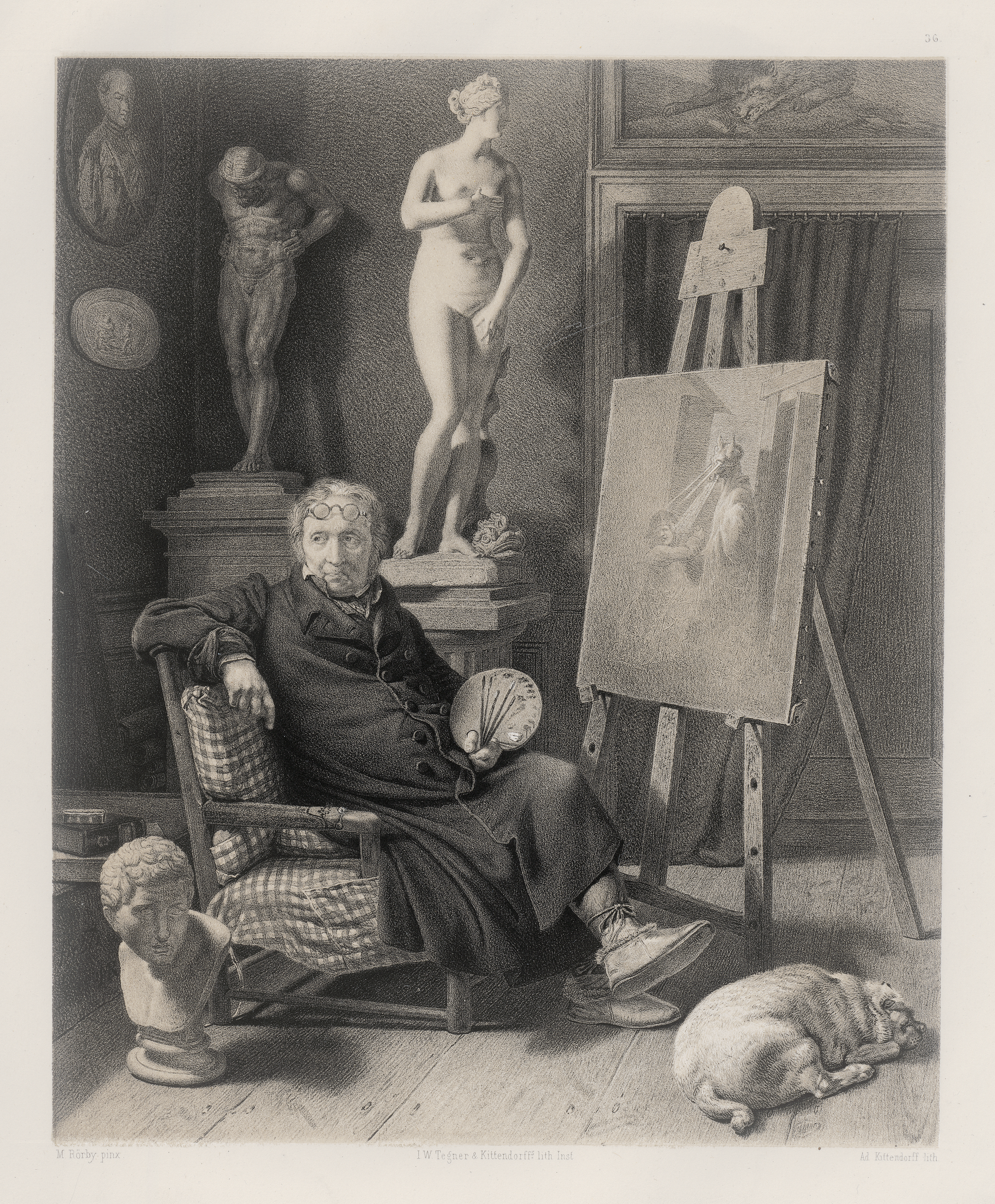 Johan Adolph Kittendorfs beeindruckende Bildersammlung reproduziert Werke aller Genres von rund 135 dänischen Künstlern und gewährt somit einen einzigartigen Überblick über die dänische Malerei des 19. Jahrhunderts. Vertreten sind einzelne Vorläufer wie N. Abildgaard und J. Juel sowie viele Namen des sogenannten Goldenen Zeitalters wie D. C. Blunck, J. C Dahl, C. Hansen, A. Melbye und natürlich C. W. Eckersberg. Zahlreich sind aber auch die Werke späterer Generationen, etwa von J. la Cour, V. Khyn und C. Locher. Das Projekt beschäftigte Kittendorf über drei Jahrzehnte: Erste Blätter wurden wohl schon 1855 veröffentlicht, der späteste datierbare Druck stammt aus dem Jahr 1887. - Sämtlich ganz ausgezeichnete, differenzierte Drucke mit beiten Rändern. Leicht stockfleckig, die ersten Blätter etwas stärker, sonst in schöner und unberührt originaler Erhaltung. Jeweils mit dem Trockenstempel der Verleger. In dieser Vollständigkeit selten.