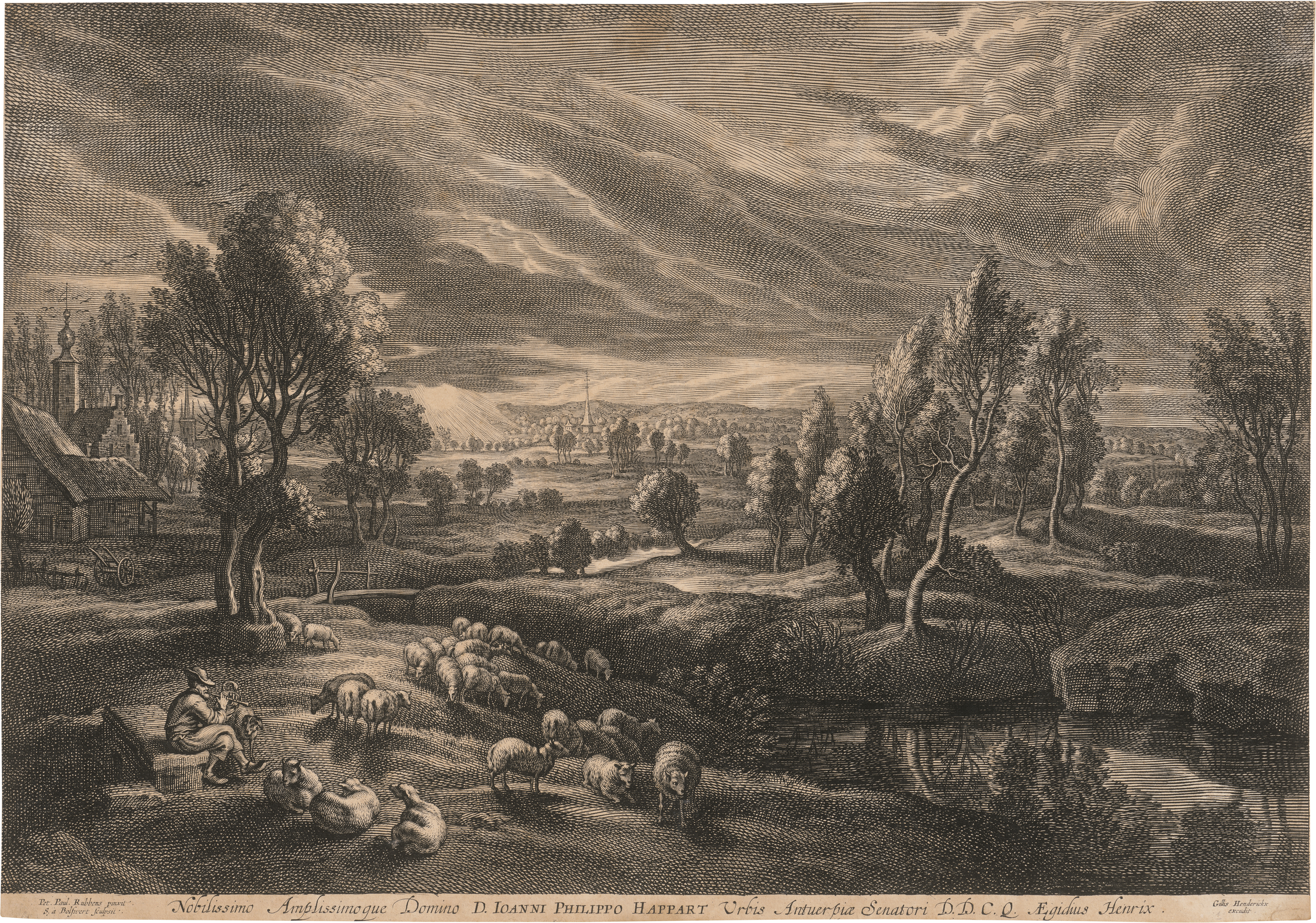 Landschaft mit Schafen und Hirte. Radierung nach Peter Paul Rubens. 31,4 x 44,9 cm. Wurzbach, aus 86, Hollstein, aus 305-325 IV (von V). Wz. Bandenwappen unter Fleur-de-lis.
