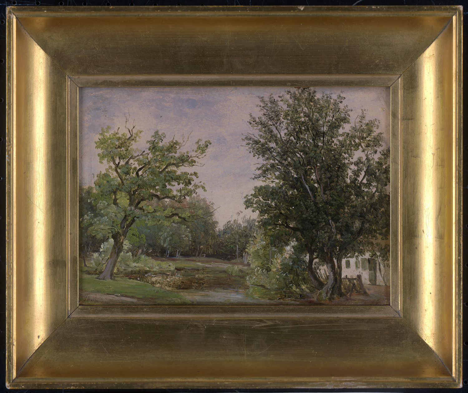 (1812 Sengeløse - 1883 Kopenhagen)Landschaft mit Gehöft, umgeben von Bäumen und einem Teich