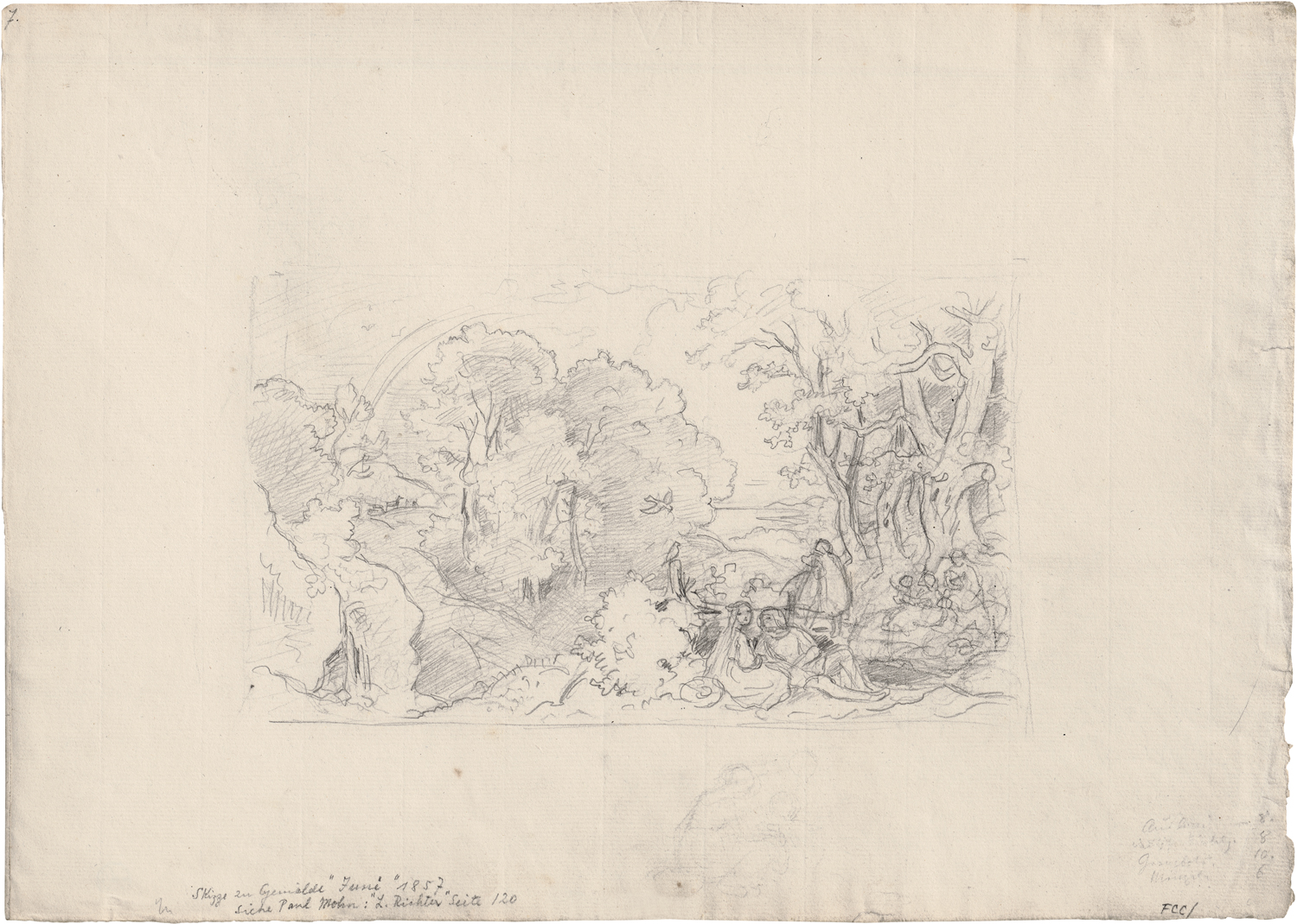 Vorstudie für das bedeutende Gemälde Richters von 1859, heute in den Staatlichen Kunstsammlungen Dresden.