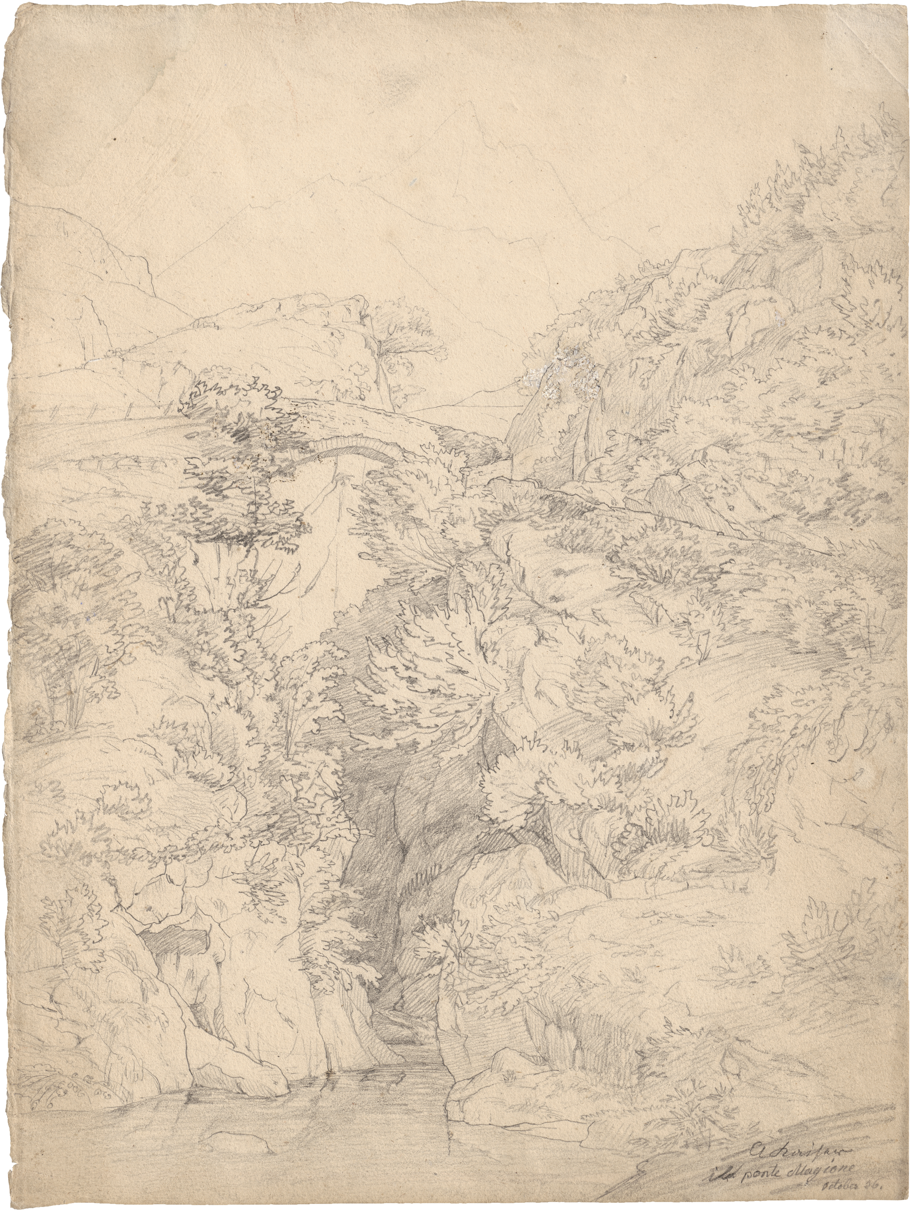 Bleistift. 32,1 x 24 cm. Unten rechts signiert, bezeichnet und datiert "A. Kaiser / il ponte Magiore / October [18]26".