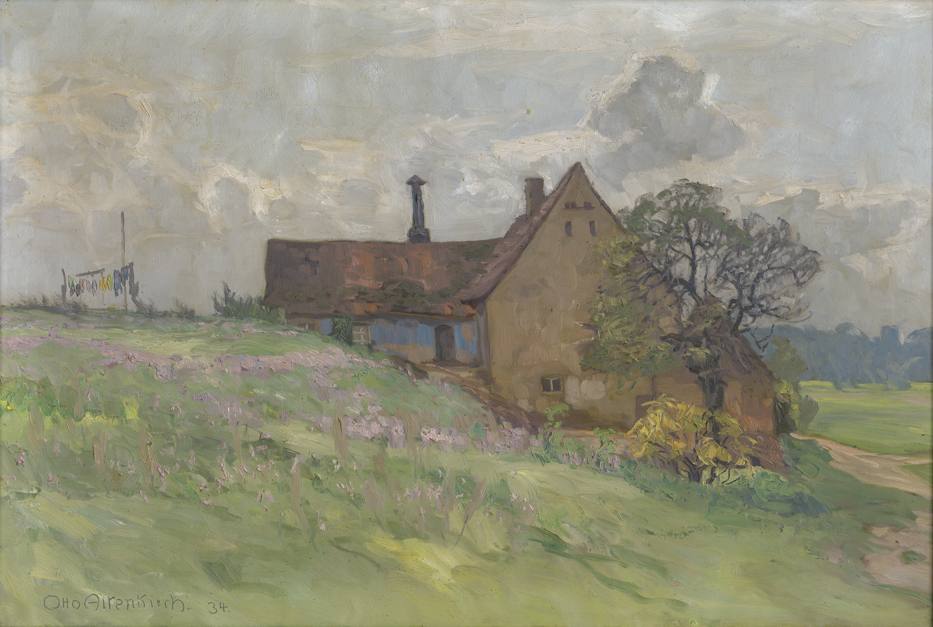 Unten links (in die feuchte Farbe geritzt) signiert "Otto Altenkirch." und datiert, verso auf dem Keilrahmen mit Feder in Schwarz nochmals signiert, datiert und betitelt sowie bezeichnet "Siebenlehn Dresden".