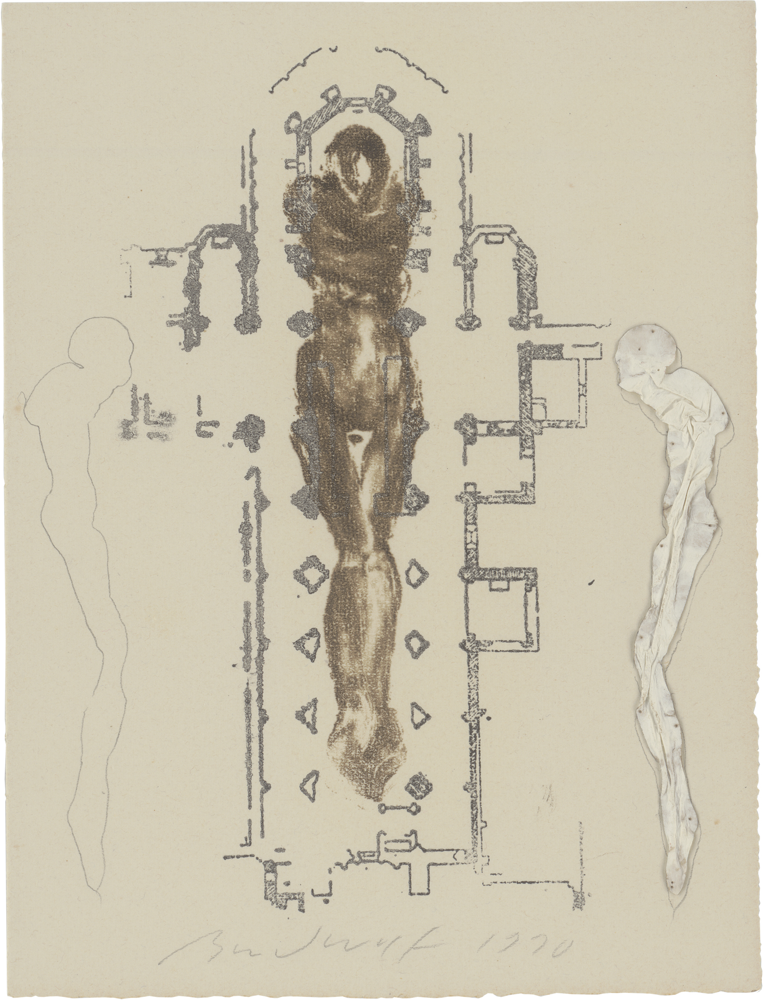 Ohne Titel (Kirchengrundriss mit Figuren)