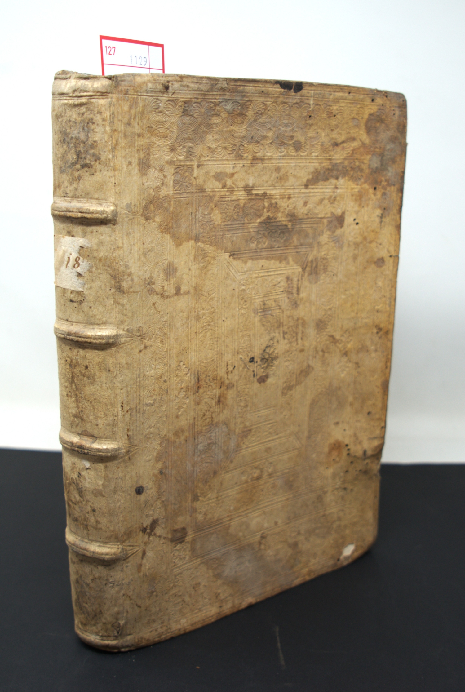 (Hardesheim, Christoph). Consensus orthodoxus sacrae scripturae et veteris eccleasiae, de sententia et veritate verborumcon coenae domenicae. 28 Bl., 200 S. Mit Holzschnitt-Druckermarke auf dem Titel. 31 x 20 cm. Blindgeprägtes Schweinsleder d. Z. (berieben, fleckig, mit Wurmlöchern, geworfen und ohne die Messingschließen) über Holzdeckeln. Zürich, Froschauer, 1578.