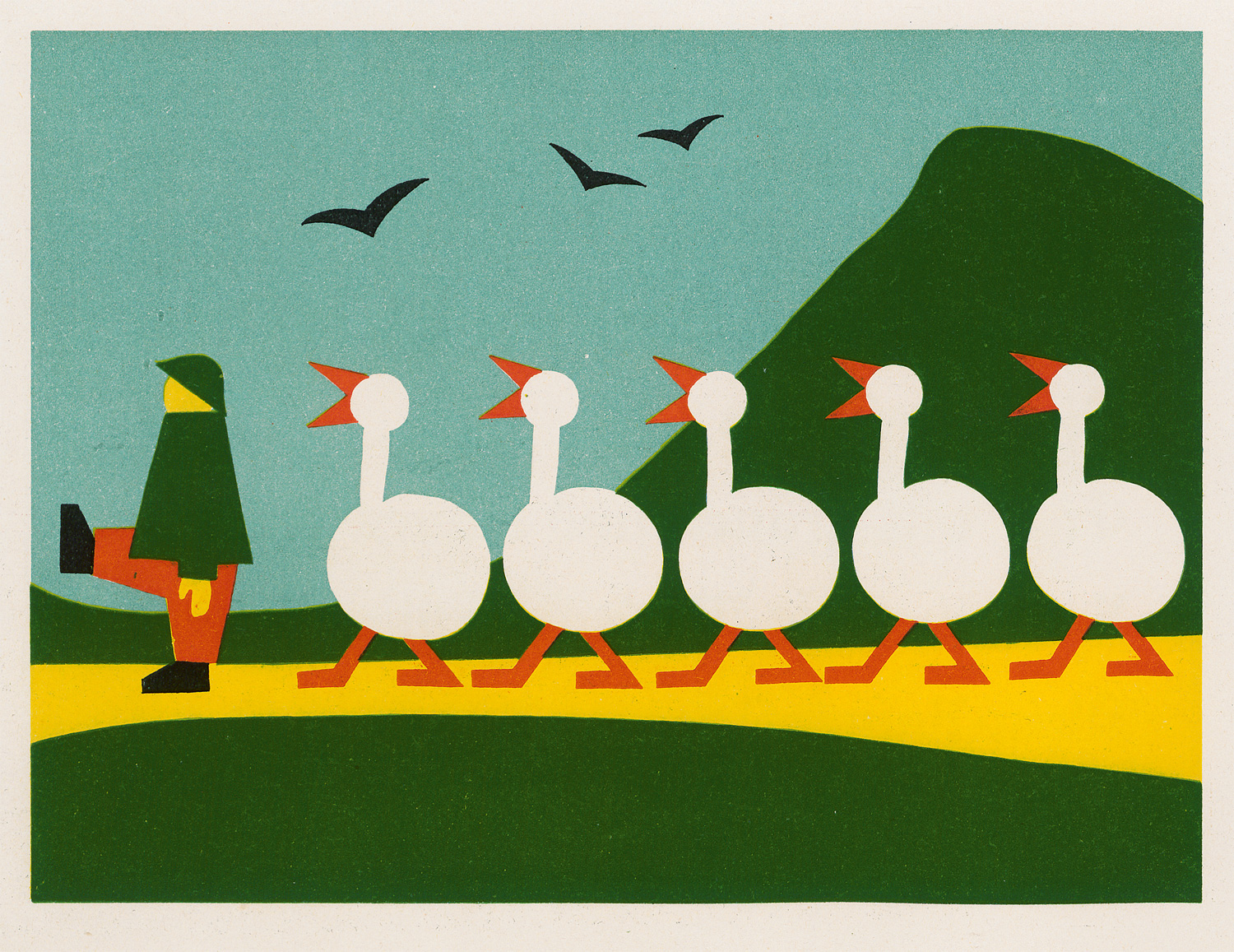 Dietrichs Münchener Künstler-Bilderbücher 33. Schug 604. Ihme III, 141. Vollmer II, 444. Brüggemann II,139, 389. Hoffmann-Thiele 199. – Erste Ausgabe. "Eines der bedeutendsten Beispiele für das experimentelle Bilderbuch" (LKJ). "Ein Bilderbuch, das die moderne Ausdruckstechnik in den Dienst des Kindes stellt und dessen originelle Rhythmen von Farbzusammenstellungen erzieherisch auf das Auge des Kindes wirken" (Liebert). "Die Bilder wirken wie aus Buntpapierstücken zusammengesetzt und erzielen ihre Wirkung durch geometrisierte, farbenfrohe großflächige Formen" (Hoffmann-Thiele). Lily Hildebrandt (1887-1974) zog 1913 nach Stuttgart und wurde an der dortigen Akademie Meisterschülerin bei Adolf Hölzel. Ein Jahr später wurde ihr Sohn Rainer Hildebrandt geboren, für den sie dieses Buch anfertigte. Bald darauf entstanden erste Hinterglasbilder, deren flächige und farbenreiche Strukturen auch in den Farblithographien dieses Buches zu erkennen sind. Ab 1935 schuf sie zahlreiche Glasfenster, noch im selben Jahr wurden ihre Arbeiten allerdings für "entartet" erklärt. Nachdem sie im privaten Kreis noch weitere Wand- und Glasmalereien schuf, brach sie ihre künstlerische Tätigkeit um 1943 ab. – Nahezu verlagsfrisches Exemplar.