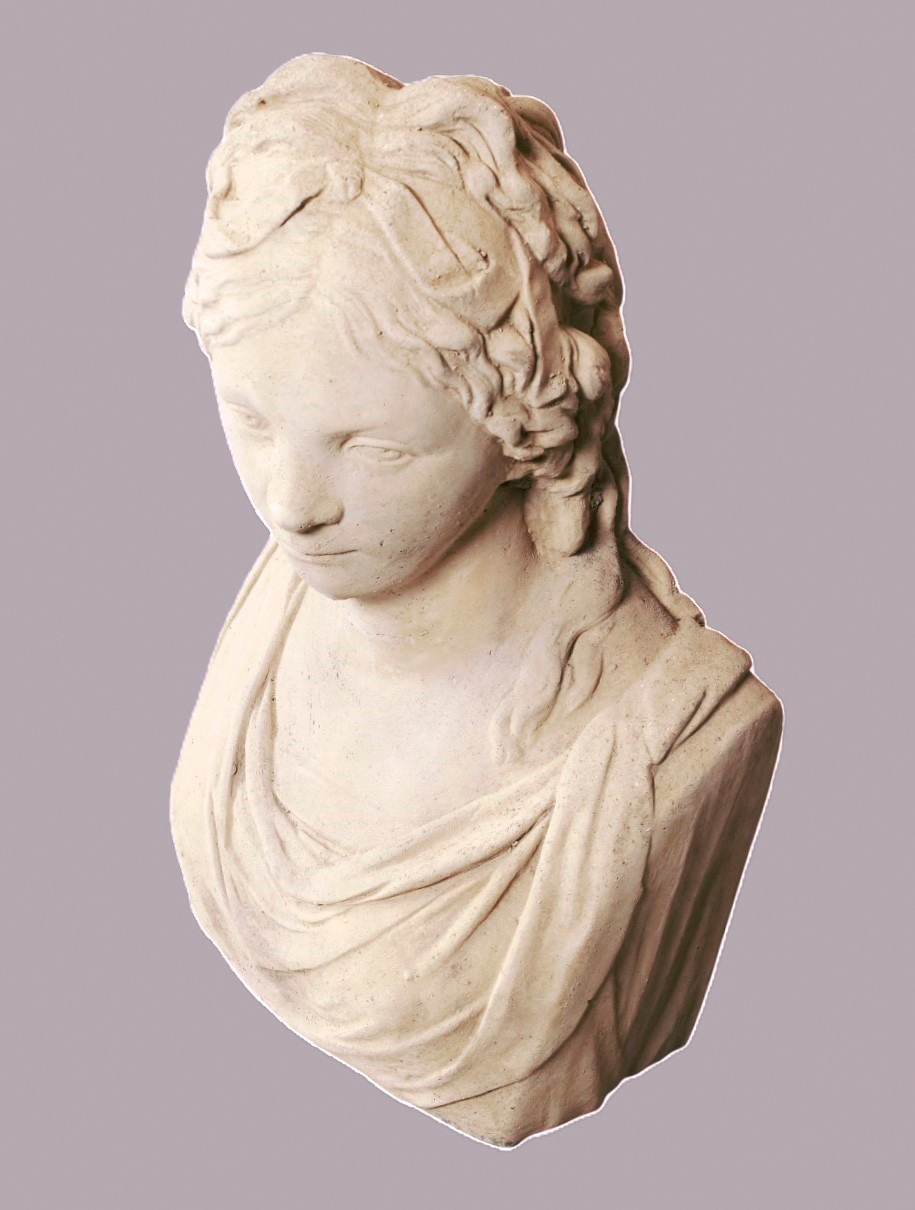 Die aus der sogenannten "Prinzessinnengruppe" herausgelöste Büste der Friederike von Preußen (1778-1841), der jüngeren Schwester, der Kronprinzessin Luise, die später mit ihrem Gemahl Friedrich Wilhelms III. den Thron der Hohenzollern besteigen sollte. Friederike heiratete Herzog Leopold IV. von Anhalt-Dessau, was ihr den Titel der Herzogin eintrug. Nachdem der bedeutende klassizistische Bildhauer Johann Gottfried Schadow (1764-1850) die Büsten der beiden Prinzessinnen erst einzeln modelliert hatte - Friederike war zu dieser Zeit gerade etwa 16 Jahre alt, schuf er zunächst ein Gipsmodell der Gruppe, bevor er sich zwischen 1795 und 1797 an die Ausfertigung als Marmorskulptur machten, die heute in der Alten Nationalgalerie in Berlin ausgestellt wird.