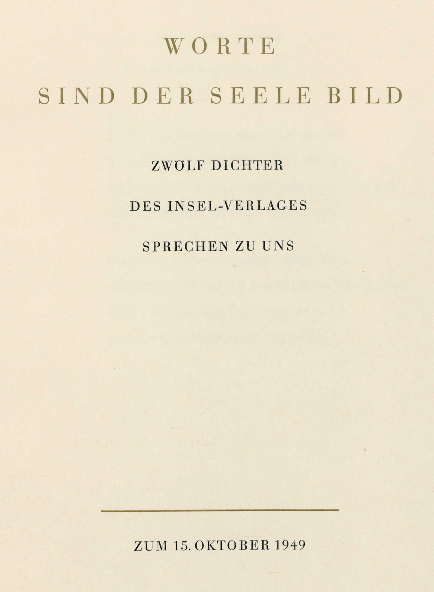 Lot 3159, Auction  127, Insel-Verlag., Worte sind der Seele Bild. Zwölf Dichter des Insel-Verlages sprechen zu uns