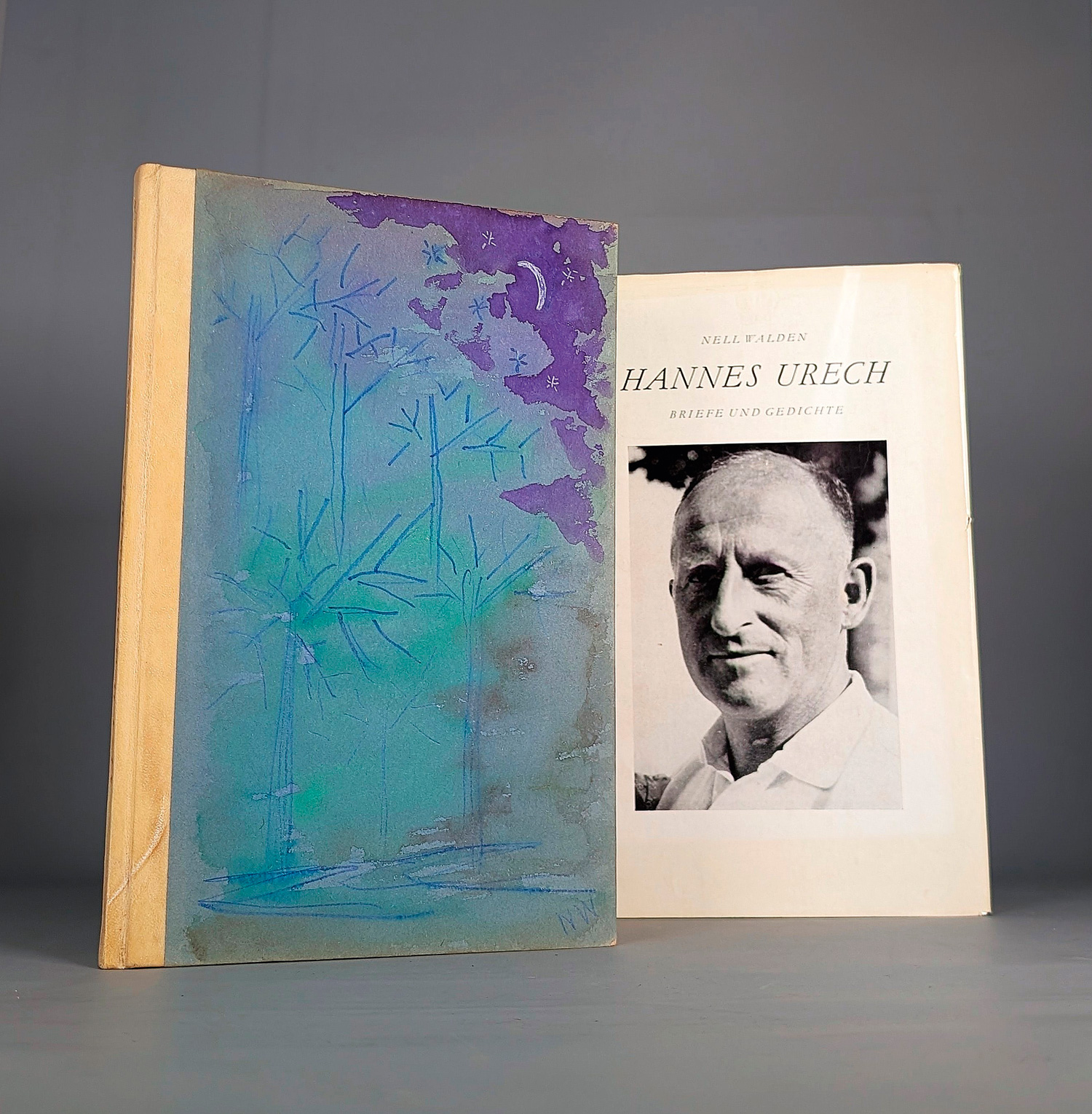 Raabe 323,1. – Erste Ausgabe. Handpressendruck der Officina Serpentis auf Bütten-Papier. Eines von 500 nummerierten Ex. (Gesamtauflage), die damals unverkauft blieben und von der die Künstlerin ca. 30 Exemplare behielt, die sie meist zu Geschenkzwecken verwendete. Titel mit eigenh. Widmung der Autorin: "Frau Dr. M. Noelle sehr herzlich von Nell Walden". Beiliegend: 1 Bl. Verlagsanzeige mit mo9nt. Visitenkarte von Nell Walden Heimann ("Berlin W 50 Marburger Strasse 3") und einem eigenhändigen "Gruss 1933!" sowie eine Verlagspostkarte von Stössinger (beides gelocht). – Wohlerhalten. – Dabei: Nell Walden. Hannes Urech. Briefe und Gedichte. 120 S., 42 Bl. (Tafelteil). Mit 35 Abb. auf Tafeln. 24,5 x 15,5 cm. OLeinen mit goldgepr. Deckel- und RTitel und OSchutzumschlag. Schinznach-Dorf, Lerchmüller, 1964. - Eines von 100 numm. u. sign. Exemplaren (Gesamtauflage). Mit eigenh. Widmung von Nell Walden". 1940 heiratete Walden den Schweizer Handballtrainer, -schiedsrichter und Funktionär des BTV Aarau, der 1963 mit 68 Jahren starb. Ihm zu Ehren publizierte Nell Walden diese Gedichtsammlung für Freunde und Angehörige, Zeugnis einer anrührenden Liebesbeziehung. - Sehr gutes Exemplar.