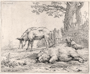 Blatt 8 der Folge. Vor den Wischkritzeln im weißen Mantel. Ganz ausgezeichneter, in den dunklen Partien teils gratiger Druck knapp innerhalb der Plattenkante geschnitten. Kleine ausgebesserte Stelle am oberen Rand, kaum merklich angerändert und mit vereinzelten Federretuschen, sonst in sehr schöner Erhaltung.