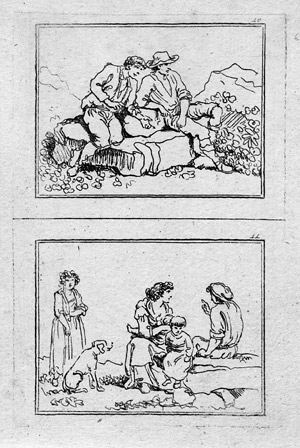 "Figure Originale Decicate a Sua Eccellenza Il Signore Maggior Generale Hervey". 13 Radierungen in Rotbraun, inkl. Titel, in Broschur der Zeit. Um 1787. Nagler 1; Le Blanc 57-69.