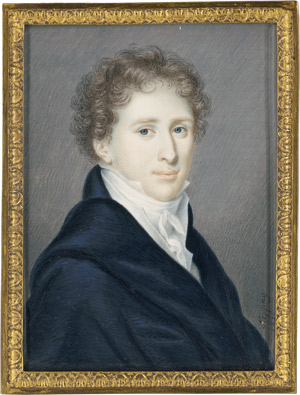 Bildnis eines Herrn mit dunklem, gescheitelten Haar