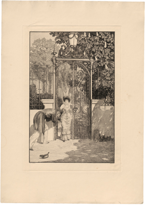 Le rideau cramoisi. Heliogravure und Radierung auf gewalztem China. 16,7 x 12,1 cm. (1886). Exsteens 506, Mascha 847 wohl II (von IV).