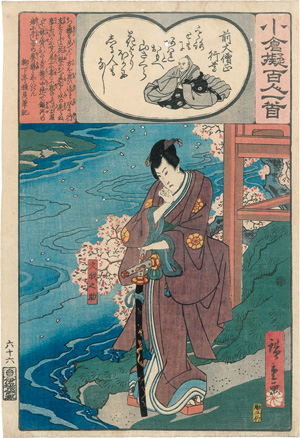 (1797-1858)4 Holzschnitte der Serie "Die Ogura-Anthologie der 100 Dichter" ( japonice: Ogura nazora-e hyaku-nin isshu). Edo (Tokio), Ibaya Senzaburo, um 1845-1852