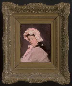19. Jh. Bildnis eines Mädchens mit rosa Kleid und rosa Haube