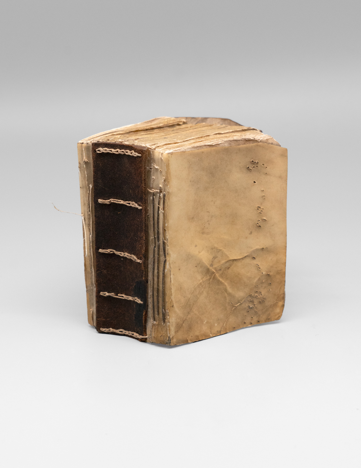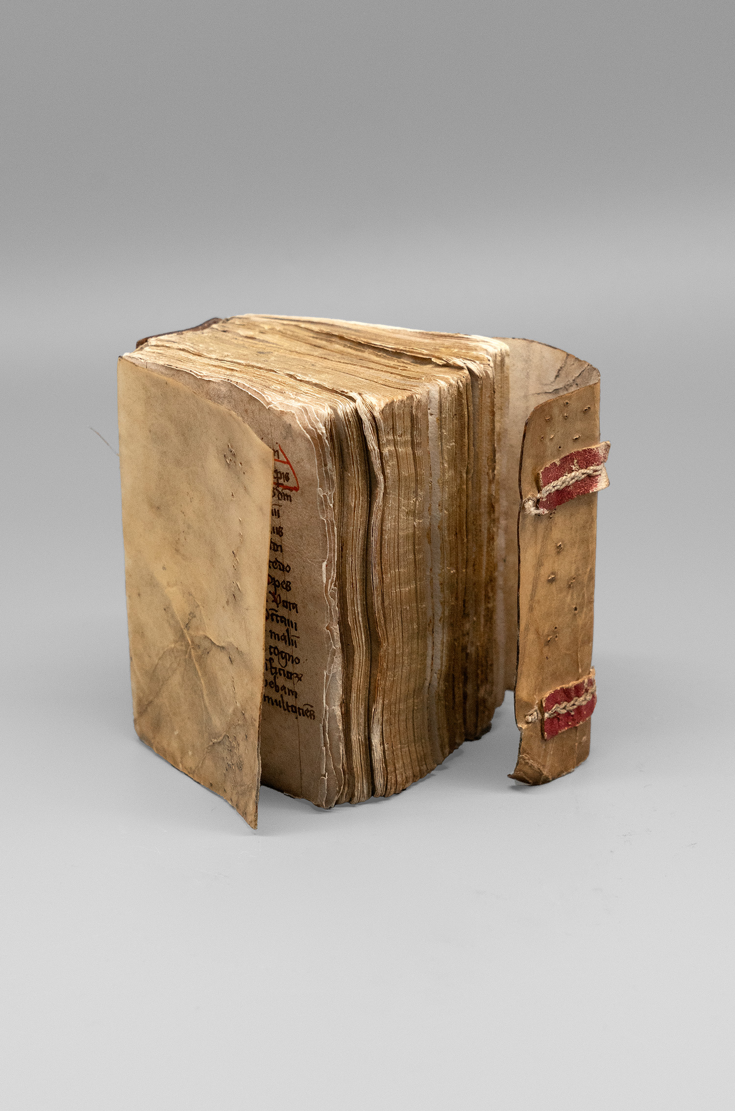 Nürnberger Predigten. Deutsche Handschrift auf Papier. 259 Bl. Verschiedene Hände (Cursiva und Bastarda). Schriftraum: 7,5-8 x 5-5,5 cm. Format 10 x 7,5 cm. Zeilenzahl stark wechselnd. Vereinzelt eingefügte Rubrizierung mit Überschriften, Kapitalstrichelung, aber auch Korrekturen und Ausstreichungen etc. Moderner Kopertband (ohne Bünde und Deckel), unter Verwendung eines festen, wohl alten Pergamentblattes hergestellt. Nünberg, Dominikanerinnenkloster St. Katharina, 1472-1498.