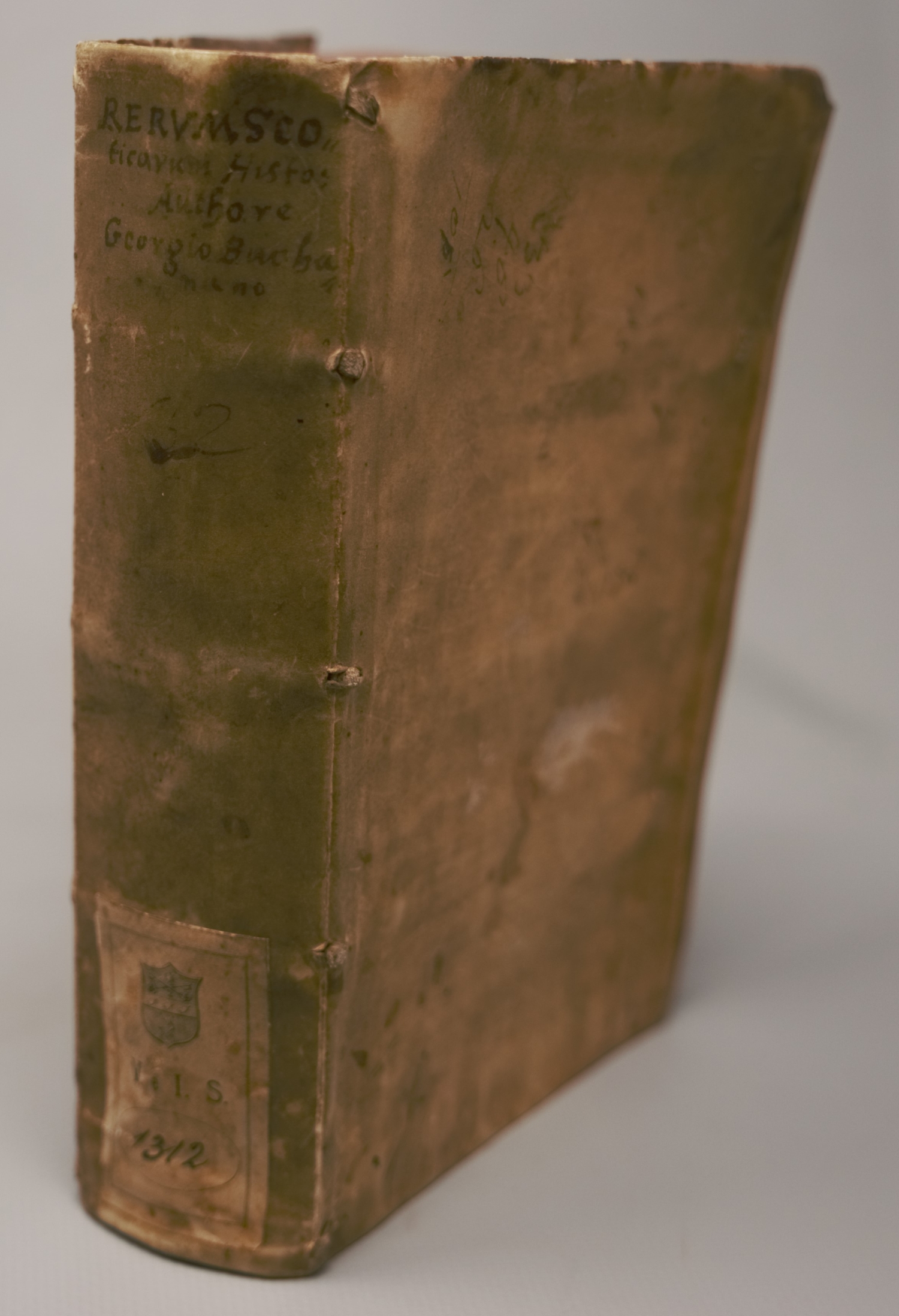 Buchanan, George. Rerum scoticarum historia. 4 Bl., 723 S., 50 Bl. Mit Titelholzschnitt und Druckermarke am Schluss. 17 x 10,5 cm. Flexibles Pergament d. Z. (Rücken mit hs. Klebenschild, stärker fleckig und etwas berieben). Frankfurt, Johann Wechel für Sigmund Feyerabend, 1584.