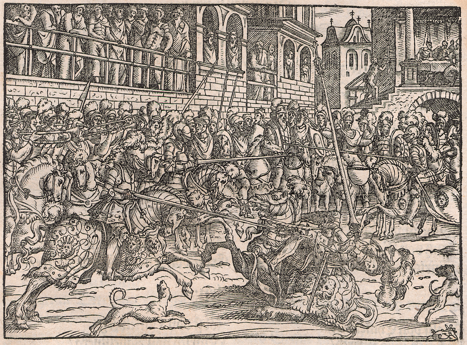 (1520-1580)ThurnierBuch. Warhafftige Beschreibunge aller kurtzweil und Ritterspil. Frankfurt, o. Dr. 1566. -