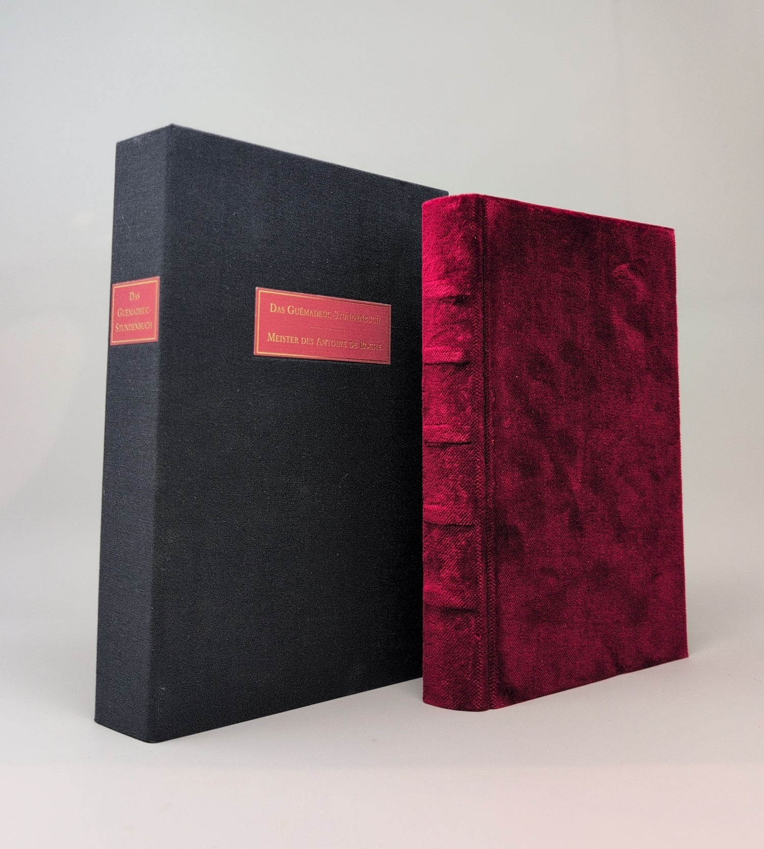 Das Guémadeuc-Stundenbuch. Faksimile (ohne Kommentarband). Mit zahlreichen Abbildungen von Miniaturen. 21,3 x 14,5 cm. Weinroter OSamteinband in dunkelblauer OLeinenkassette (diese minimal berieben) mit goldgeprrägtem Rücken- und Deckelschild. Ramsen, Tenschert, 2000.