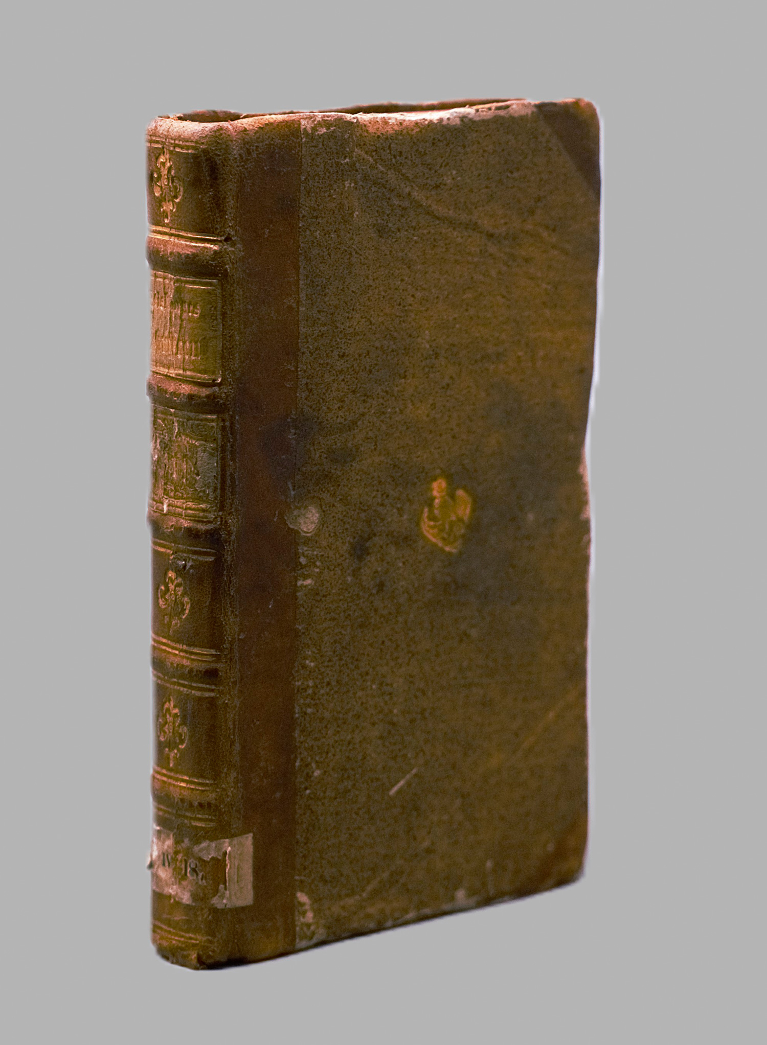 Weishaupt, Adam. Ueber die Schrecken des Todes eine philosophische Rede. 86 S., 1 w. Bl. 16 x 9,5 cm. Halbleder d. Z. (etwas stärker fleckig, berieben und bestoßen) mit ornamentaler RVergoldung und 2 goldgeprägten RSchildern sowie kleiner goldgeprägter Deckelvignette in Vogelform. Nürnberg, Ernst Christoph Grattenauer, 1786.