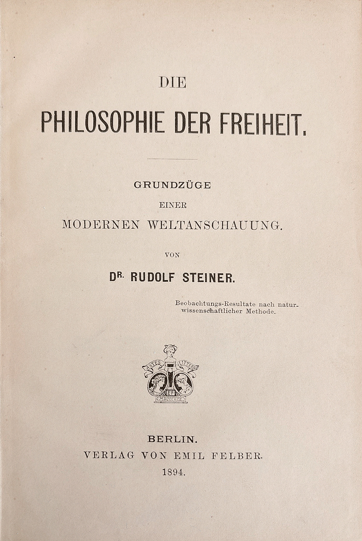 Steiners philosophisches Hauptwerk Die Philosophie der Freiheit stellt den ambitionierten Versuch dar, Kants Grenzen der Erkenntnis zu überwinden und erschien in einer Auflage von 1000 Exemplaren, von denen jedoch nur ein Bruchteil verkauft werden konnte. Nachdem Steiner 1891 in Rostock mit einer Schrift über Fichtes Wissenschaftslehre promoviert wurde (Note: rite), stellt die vorliegende Schrift die Weiterführung seiner erkenntnistheoretischen Überlegungen dar und bildet zugleich eine wichtige Vorarbeit zur Begründung seiner anthroposophischen Lehre. "Steiner steht in seinen philosophischen Anfängen unter dem Einfluß Haeckels und Nietzsches. Er entwickelt eine Philosophie der Freiheit, die das Individuum als 'Quell aller Sittlichkeit und Mittelpunkt alles Lebens' betrachtet" (Ziegenfuß).
