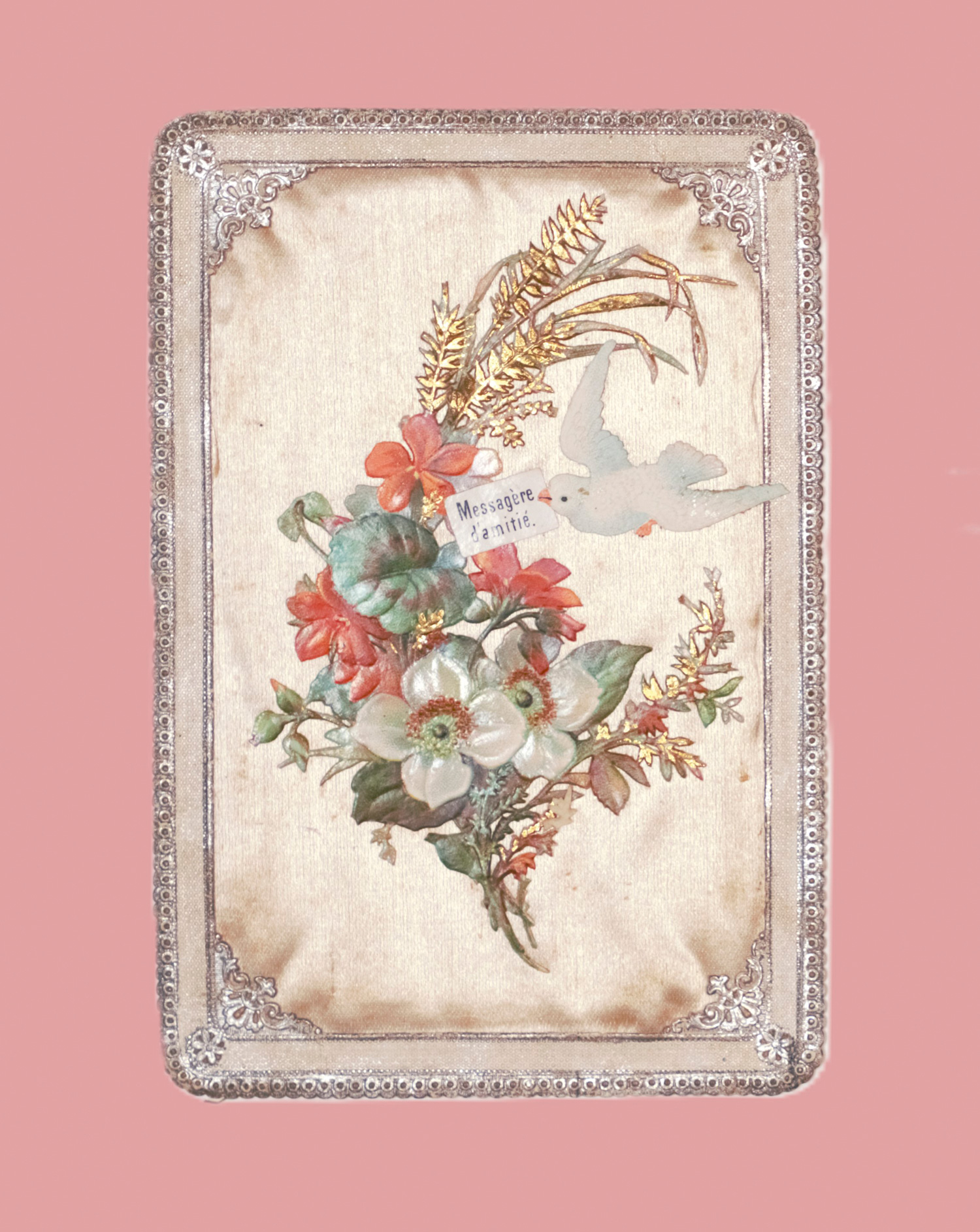 Seidenbillets. - Sammlung von 10 auf Seide montierten Billets. 9 Chromolithographien und 1 Gouachezeichnung mit Gold- und Spitzenrahmen, teils mit Klappfunktion. Ca. 5,5 x 7,5 cm bis 12 x 8 cm. 4 Auf Papier montiert. Deutschland um 1840-1870.