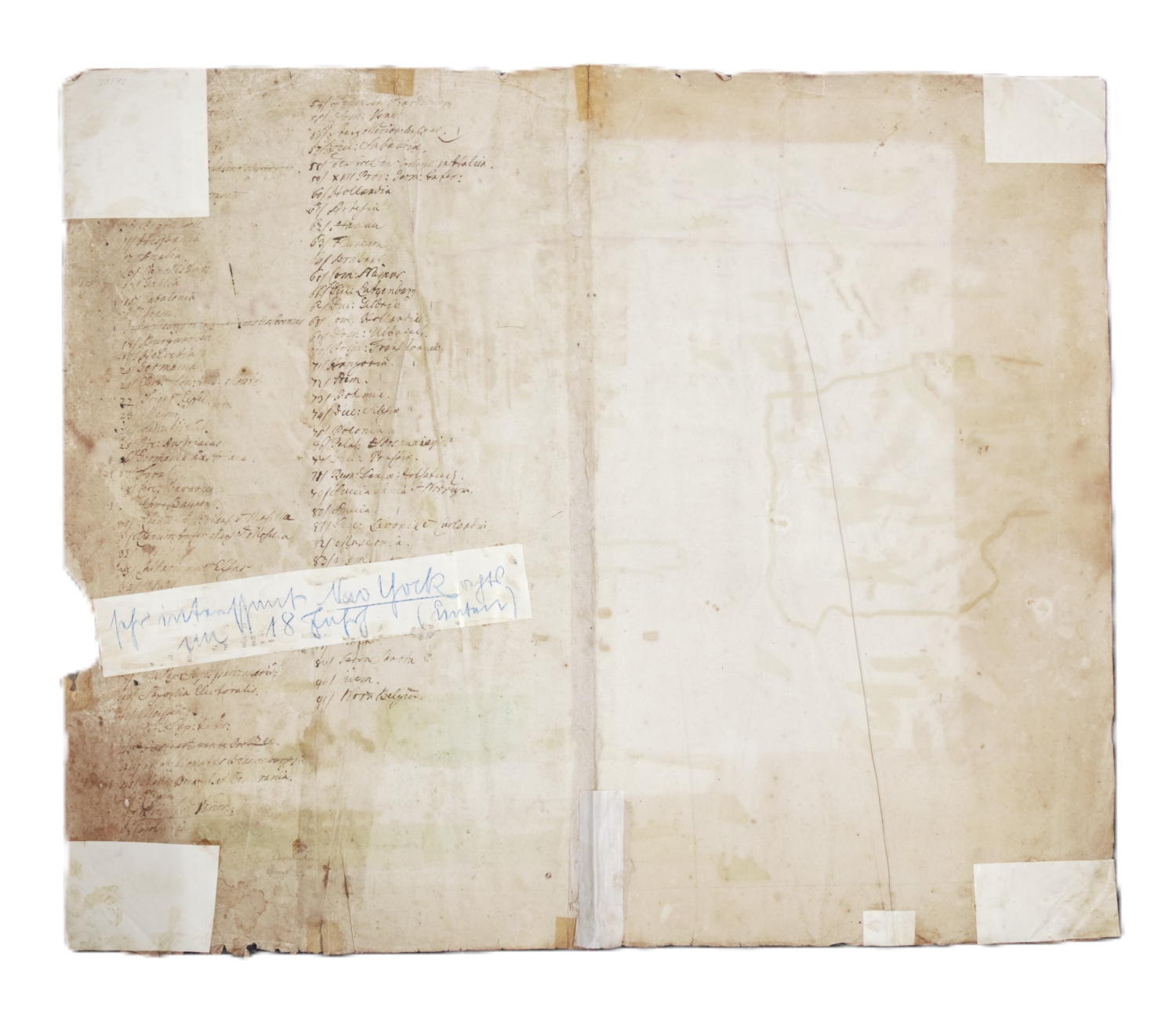 Burden 315 – Seltene kolorierte Kupferstichkarte von Justus Danckerts (1635-1701) mit der zweitältesten Darstellung New Yorks als Insetkarte. Dargestellt ist die Ostküste zwischen dem Penobscot River in Maine und der Chesapeake Bay, mit dem St. Lorenz-Strom als nördlichen Abschluss sowie zahlreiche Staffagen in Form von einheimischen Tieren, wie zum Beispiel Hasen, Bären, Füchse, Rehe, Pferde und Truthähne. – Mit Mittelfalz, papierbedingt gebräunt, etwas braun- und fingerfleckig sowie mit teils hinterlegten kleineren bis größeren Einrissen und Fehlstellen. Dekorative, seltene Karte mit der zweitältesten gedruckten Ansicht von New York.