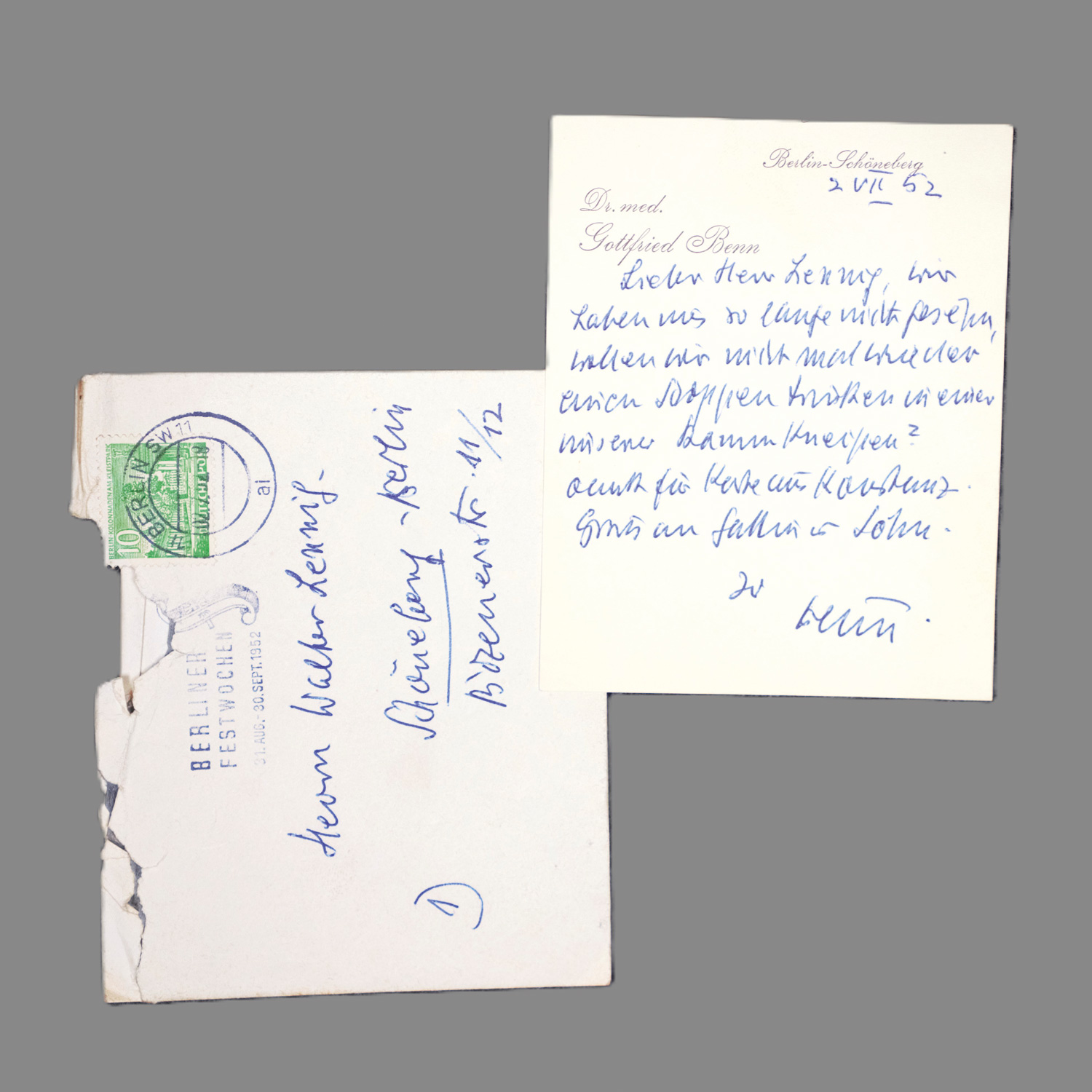 Lot 2507, Auction  126, Benn, Gottfried, Briefkarte an Walter Lennig. Mit Umschlag. 1952