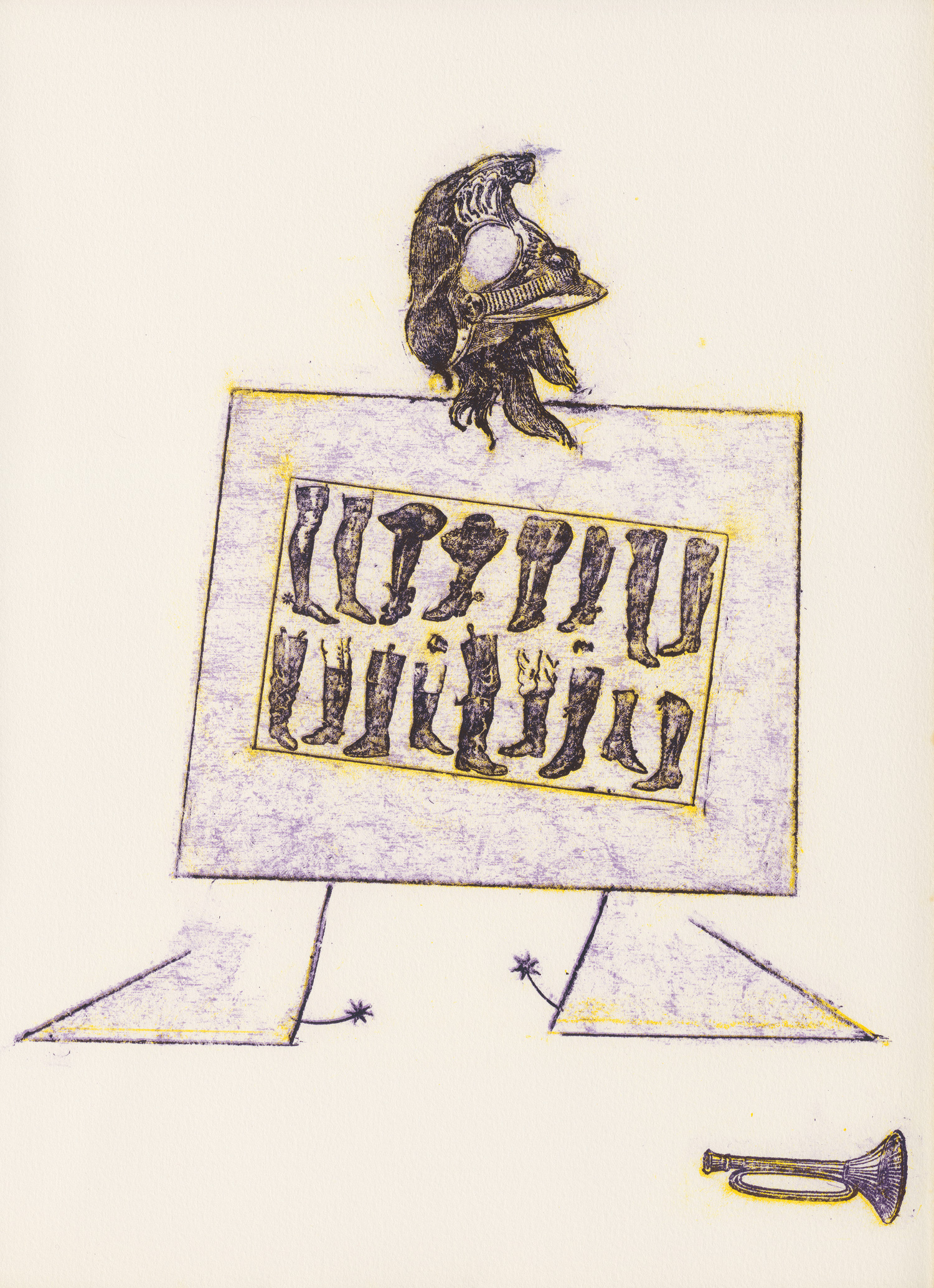 Ernst, Max. - Ribemont-Dessaignes, Georges. La ballade du soldat. 95 S. Mit 34 teils farbigen Orig.-Lithographien von Max Ernst. 40,5 x 30 cm. Lose Bogen in illustr. OUmschlag in illustr. OLeinendecke in OLeinen-Schuber. (Vence), Pierre Chave, (1972).