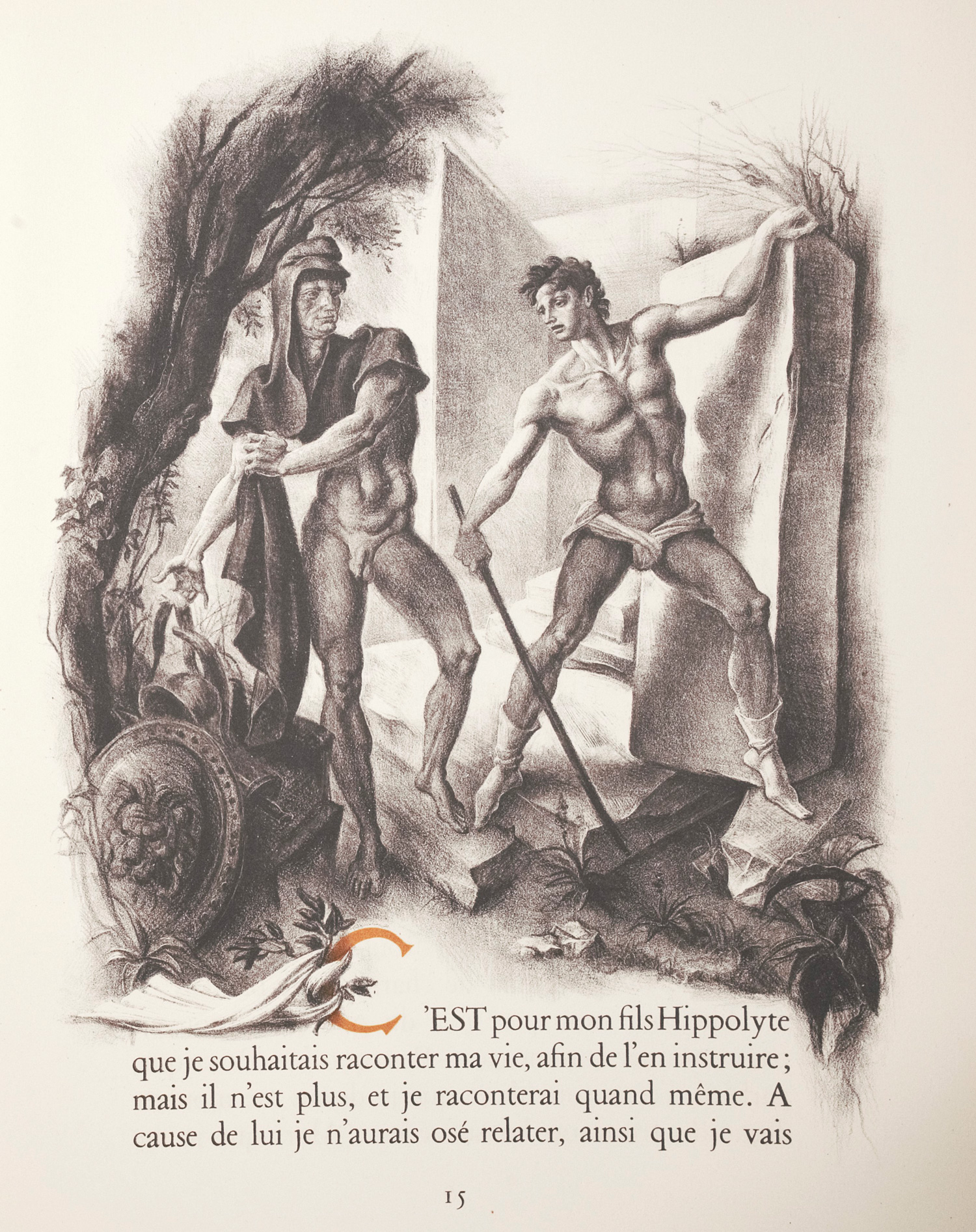 Gide, André. Thésée. 126 S., 2 Bl. Mit 29 Orig.-Lithographien von Mariano Andreu. 38 x 28 cm. Lose Bogen in OUmschlag in OPappdecken und OPappschuber. Paris, NRF, 1947.