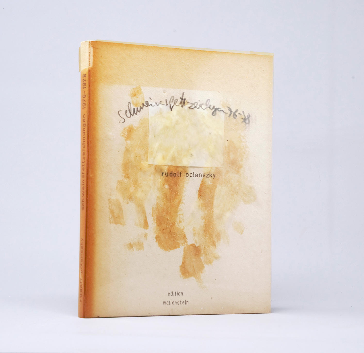 In sehr geringer Auflage im Selbstverlag des Künstlers im Umfeld des Wiener Aktionismus erschienenes Künstlerbuch. Vorderumschlag mit Original-"Schweinsfett"-Collage, Titel in der Handschrift des Künstlers (in Bleistift "Schweinsfettzeichnungen 76-78") und Stempel: "rudolf polanszky/edition wallenstein" (ebenso mit gestempeltem Rückentitel). Frühwerk des 1951 geborenen, stark theoriegeleiteten Künstlers, der in den 80er Jahren auch mit seinen "Sprungfederbildern" Bekanntheit erlangte. – Bl. 1 leicht angeschmutzt, ansonsten frisches Exemplar.