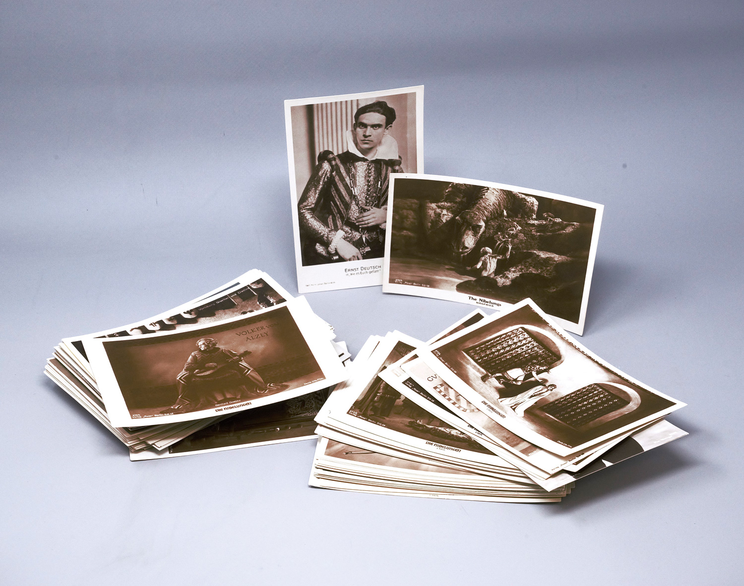 Sammlung von Filmszenen zu dem Film "The Nibelungs" sowie Schauspielerporträts von zum Beispiel Paul Wegener, Heinrich Schlusnus, Alexander Moissi, Friedrich Zelnik, Ernst Deutsch, Eduard von Winterstein. – Leicht gebogen, sonst gut erhalten.