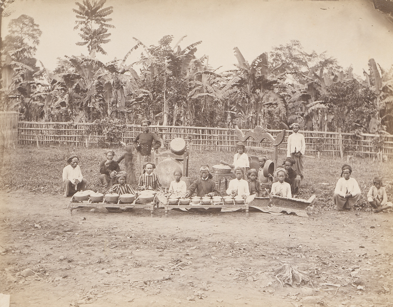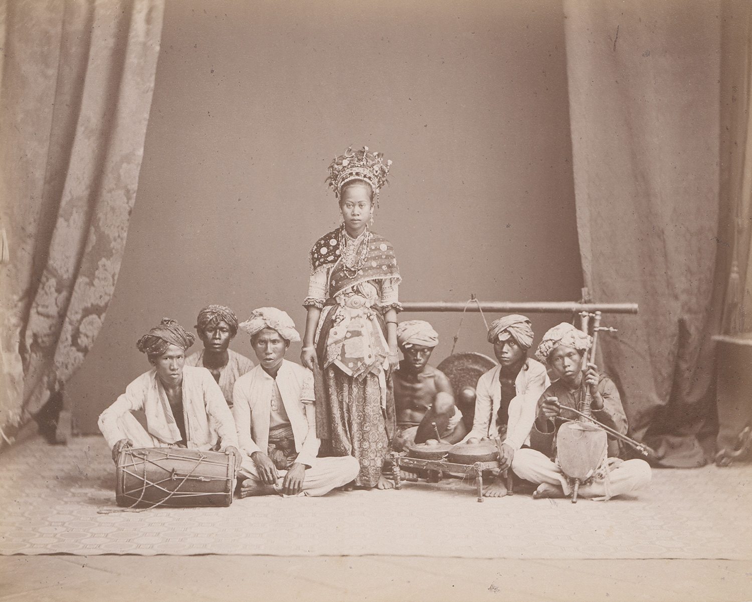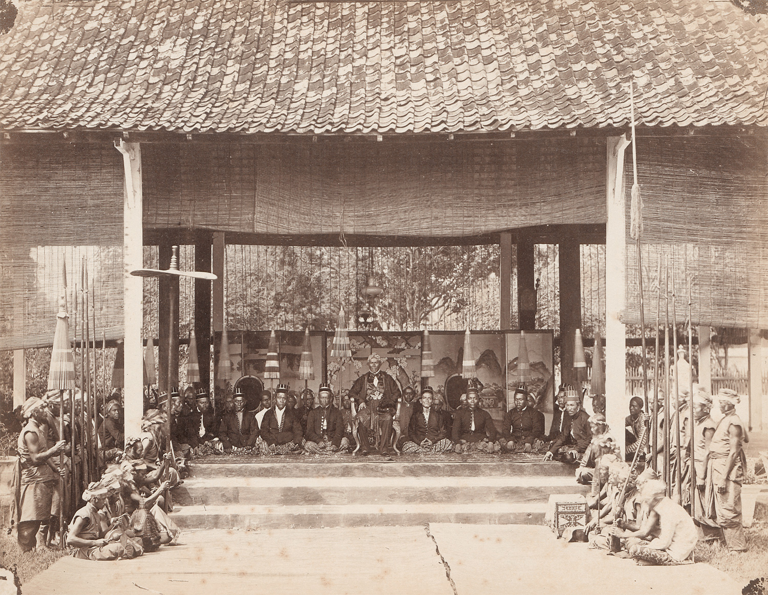 This group documents key moments and figures from colonial-era Java during the late 19th century. Among the images are the execution of the so-called Tambun murderers in Bekasi (1869), the Bupati of Pati, Raden Adipati Arya Candra Adinegara with his entourage, and the royal procession of Pakubuwono IX, Susuhunan of Surakarta. Also included are striking portraits of wayang topeng performers, views of village life, and ceremonial gatherings. These prints exemplify Woodbury & Page’s distinctive ability to combine ethnographic detail with a formal photographic sensibility, capturing the diverse visual culture of the Dutch East Indies with remarkable clarity. – Some foxing of mounts, some fading and light scuff marks, otherwise all in good to very good condition.