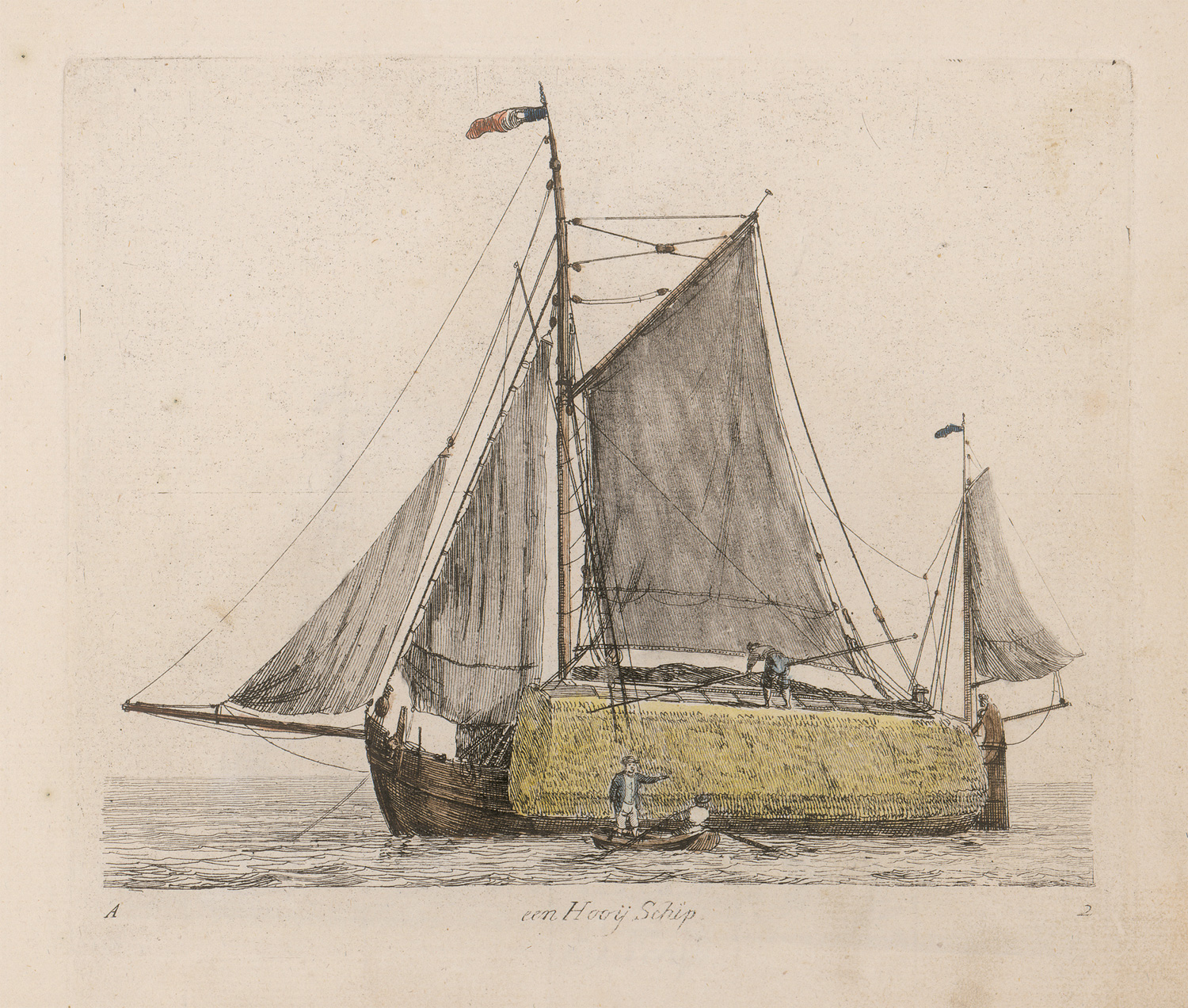 Nederl. Scheepvaart Mus. II, 751. Wurzbach I, 619. Thieme/B. XV, 66. – Zweite Auflage der zweiten Ausgabe. Prachtvolle Folge mit Schiffen, "die ihrer genauen Konstruktionskenntnis wegen gesucht sind" (Wurzbach). Groenewegen (1754-1826) war Sohn eines Schiffszimmermannes. Zunächst schuf er 6 Folgen zu je 12 kl. Blättern (A-F), die er 1801 um eine weitere Folge ergänzte. Erst in der zweiten Ausgabe werden alle 84 Tafeln - wie hier vorliegend - zusammengebunden und um ihre Titel erweitert. Die ursprünglich geschriebenen Jahreszahlen wurden in der vorliegenden Auflage entfernt (vgl. Nederl. Scheepvaart Mus.). Papierformat ca. 22 x 17,5 cm. Tafelgröße ca. 12,5-15 x 12,5-15 cm. Die erste Tafel ("een Hooij Ship") alt koloriert. – Innenspiegel mit jüngerem Besitzvermerk; vord. fl. Vorsatz mit mehreren Knickspuren;teils minimal braunfleckig und in den Rändern leicht gebräunt; insgesamt wohlerhaltene, schöne Folge.