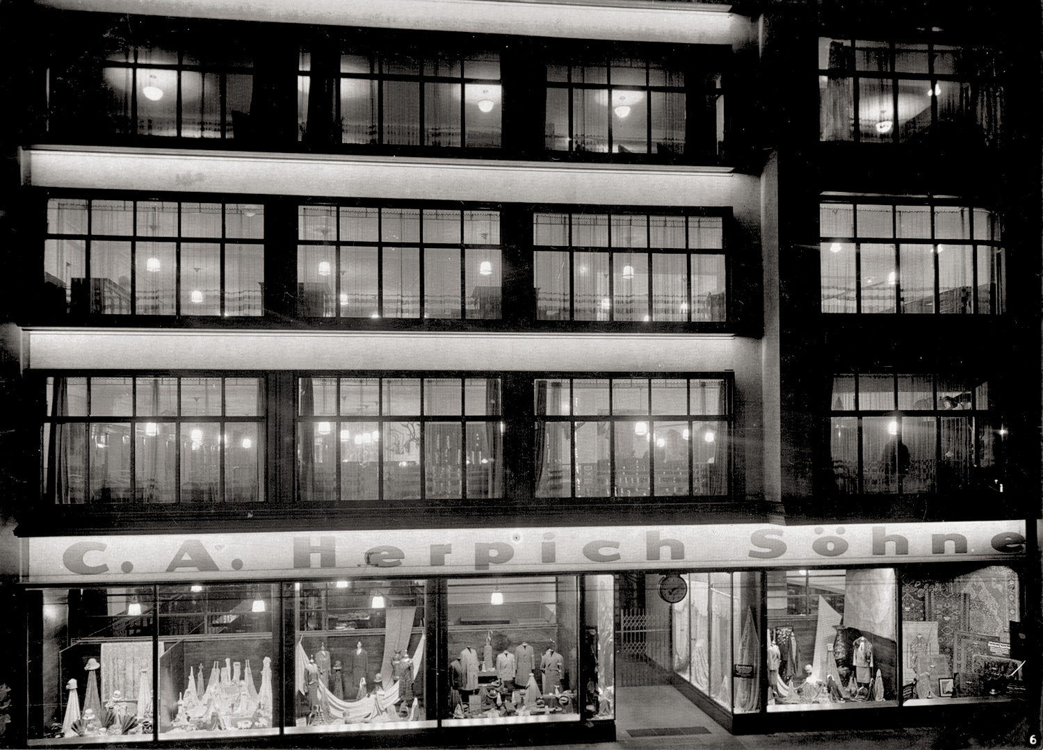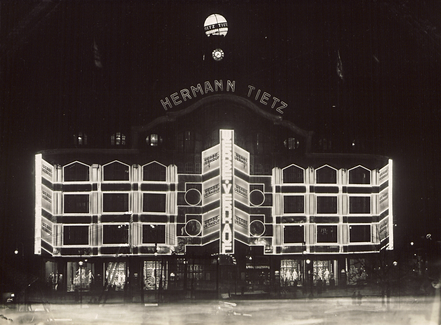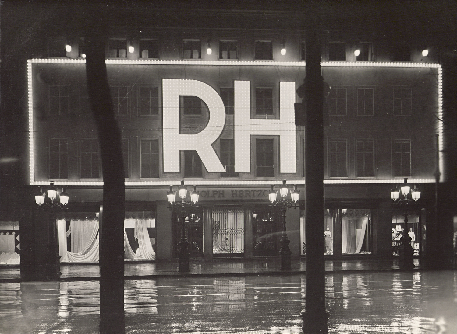 The series includes views of modern commercial architecture, such as the department stores Kaufhaus des Westens (KaDeWe) and Michels & Cie. on Kurfürstendamm (both designed by Johann Emil Schaudt); the main branch of Michels & Cie. on Leipziger Straße; the furrier C.A. Herpich & Söhne on Leipziger Straße (Erich Mendelsohn); and several branch offices of Hermann Tietz (Hertie).