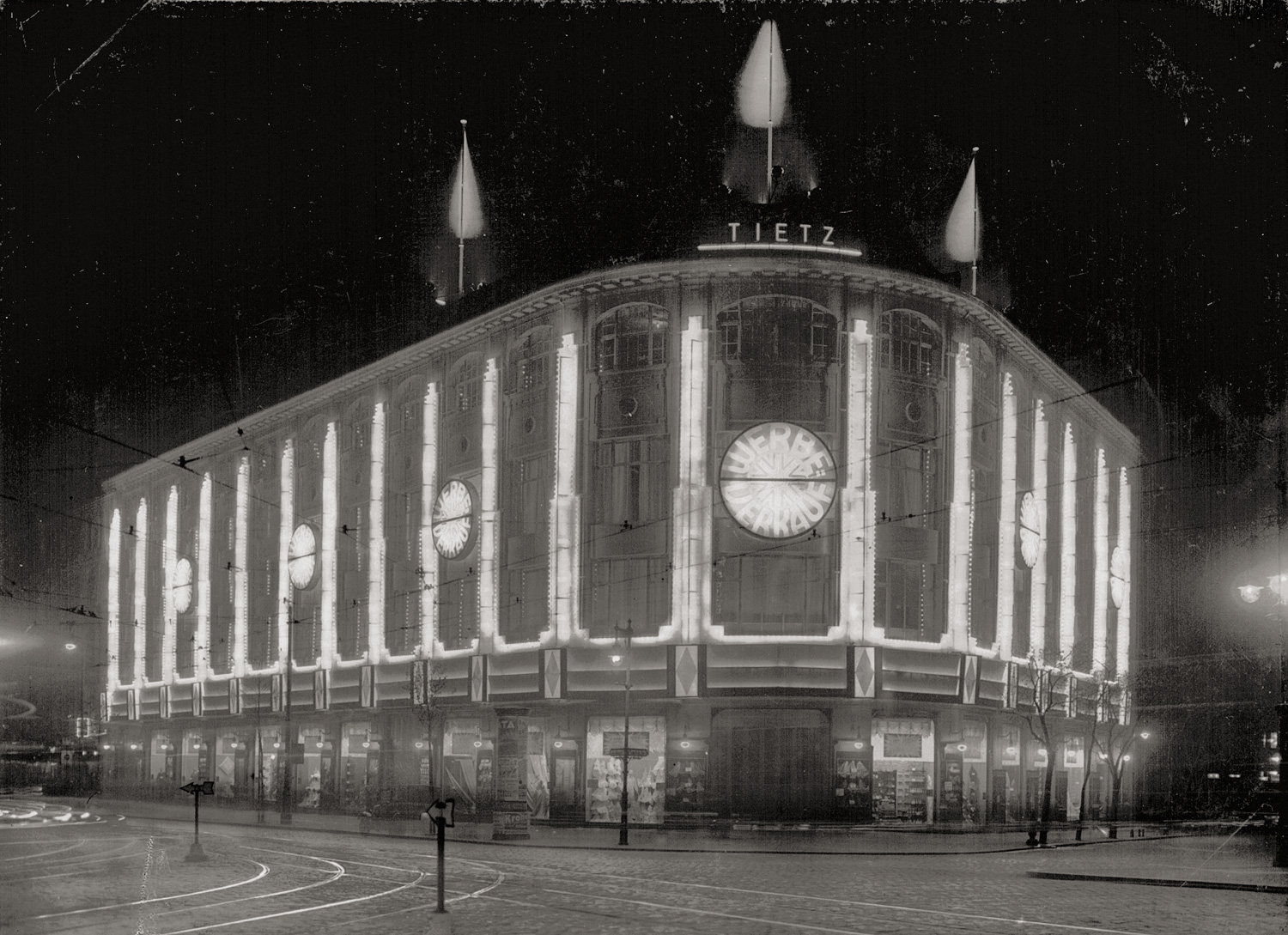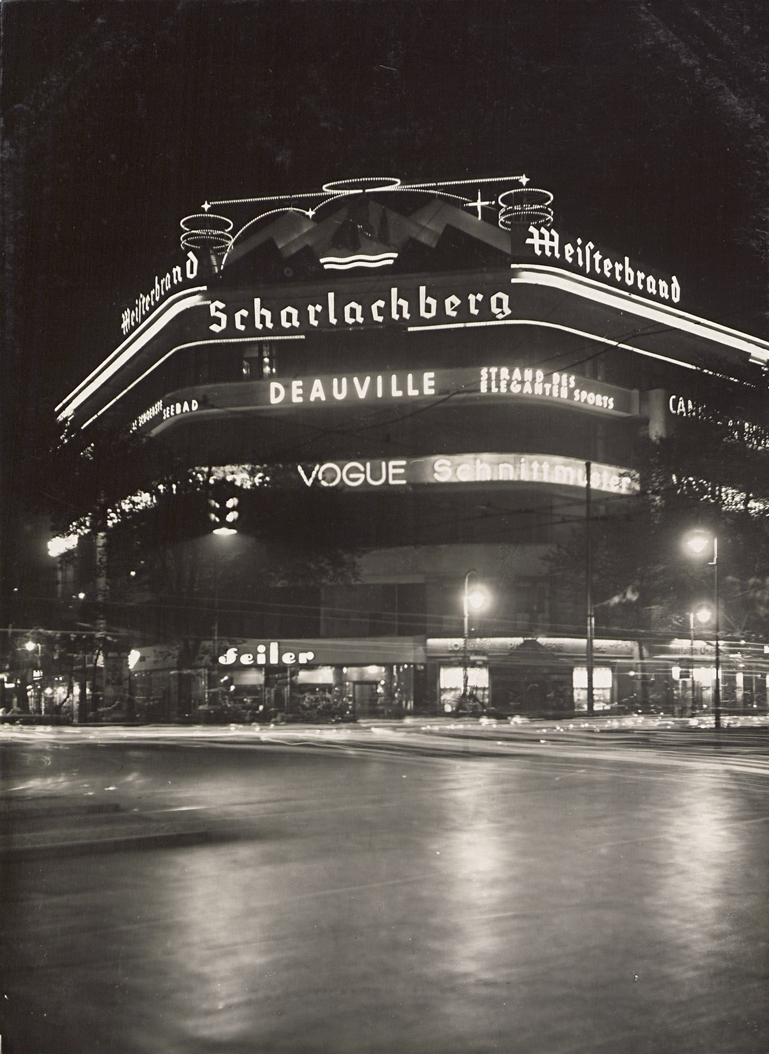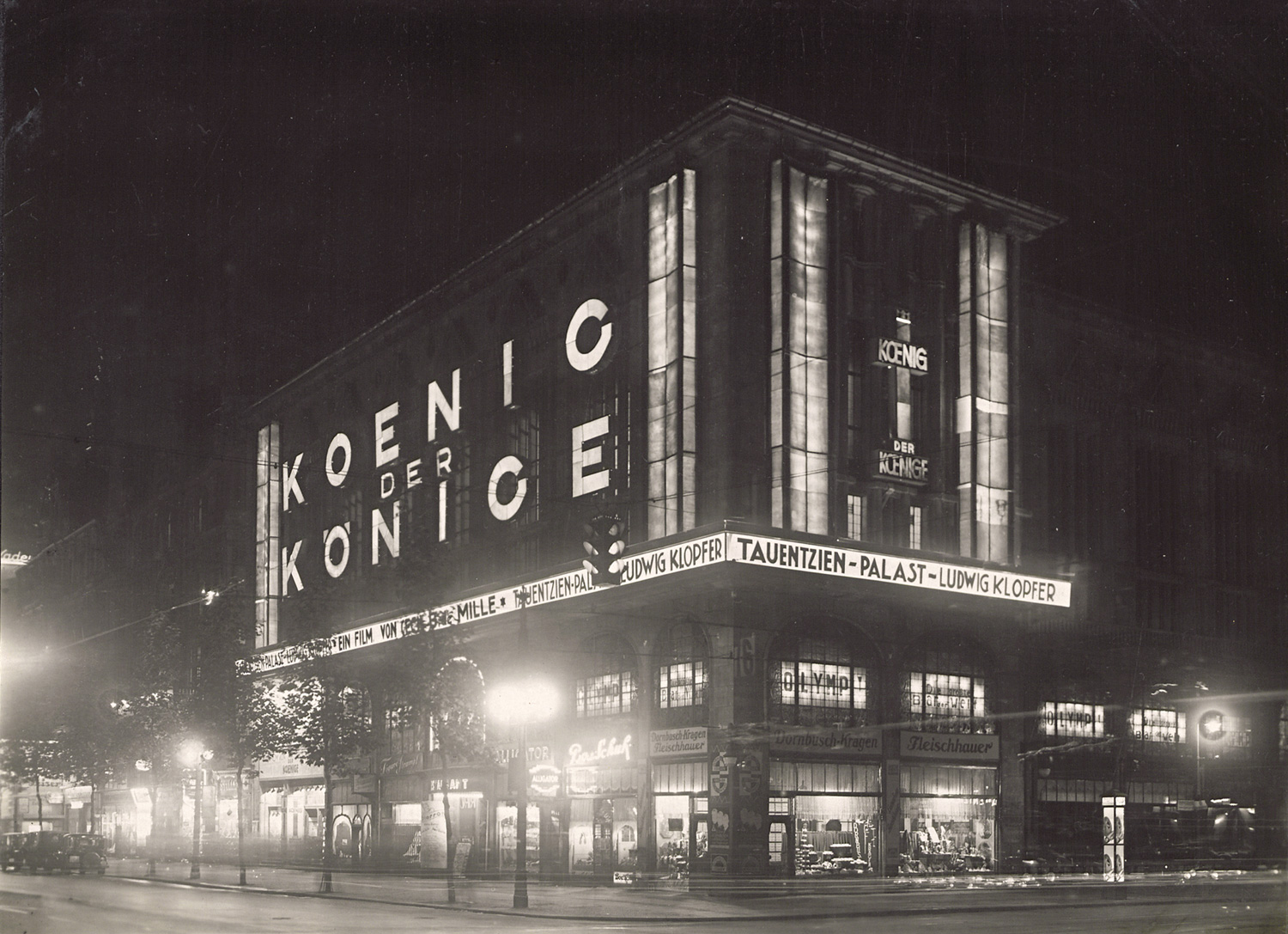 The series includes views of modern commercial architecture, such as the department stores Kaufhaus des Westens (KaDeWe) and Michels & Cie. on Kurfürstendamm (both designed by Johann Emil Schaudt); the main branch of Michels & Cie. on Leipziger Straße; the furrier C.A. Herpich & Söhne on Leipziger Straße (Erich Mendelsohn); and several branch offices of Hermann Tietz (Hertie).
