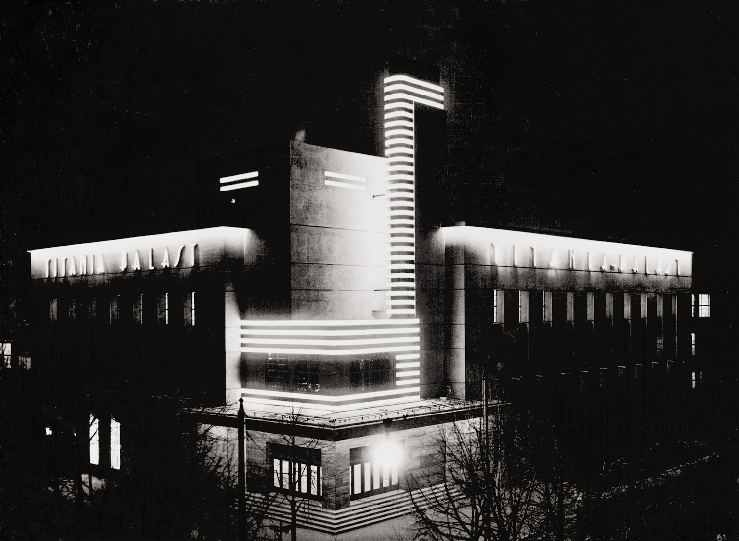 Already in the early 1920s, designer Walter Dexel had begun developing fluorescent lighting for advertising purposes. From 1926 onward, he worked in Frankfurt, designing illuminated signage that aimed to integrate harmoniously with architectural façades. His work included large-scale rooftop lettering, illuminated phone booths, and advertising columns - reflecting the growing interest in using electric light as both a functional and aesthetic element in architecture and marketing.