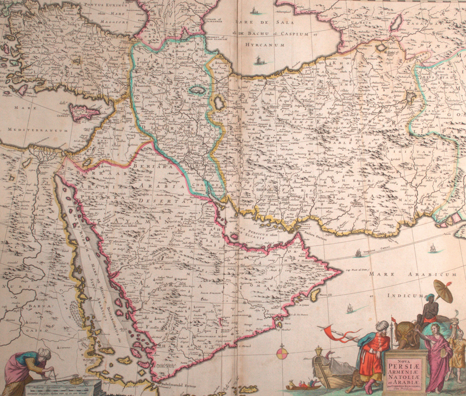 Danckerts, Justus. Nova Persiae Armeniae Natoliae et Arabiae. Grenzkolorierte Kupferstichkarte. 48 x 56,5 cm (Plattenrand). Amsterdam 1690.